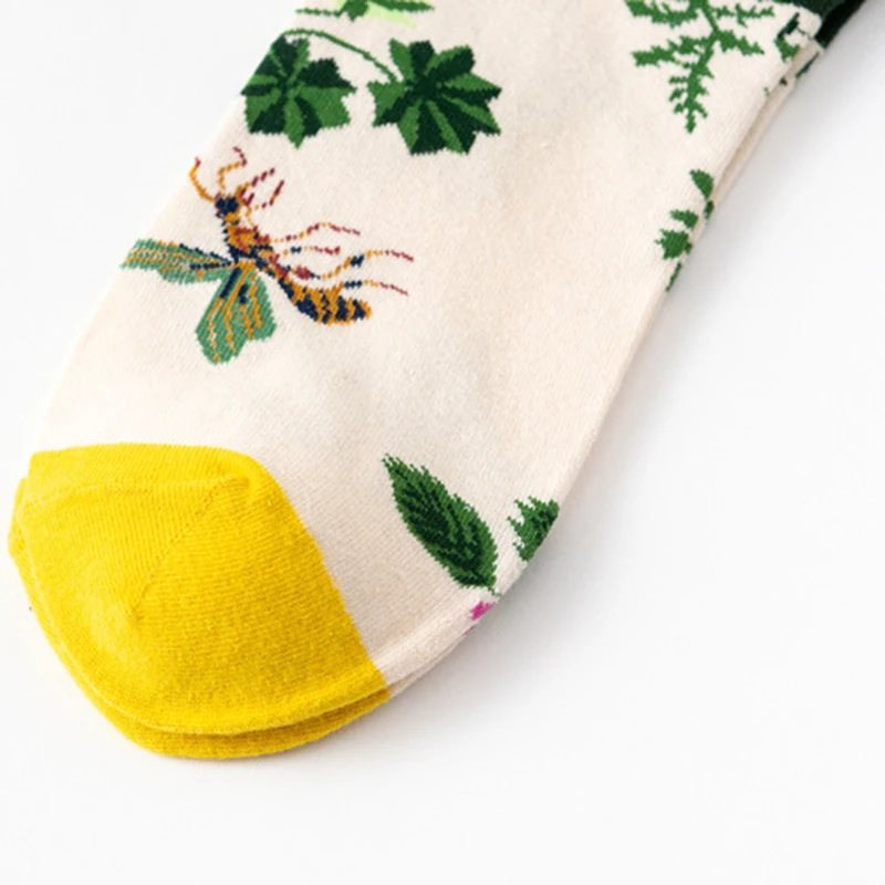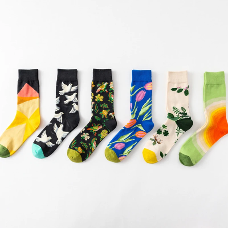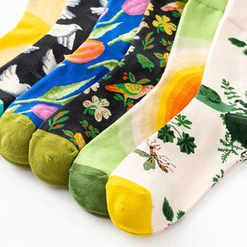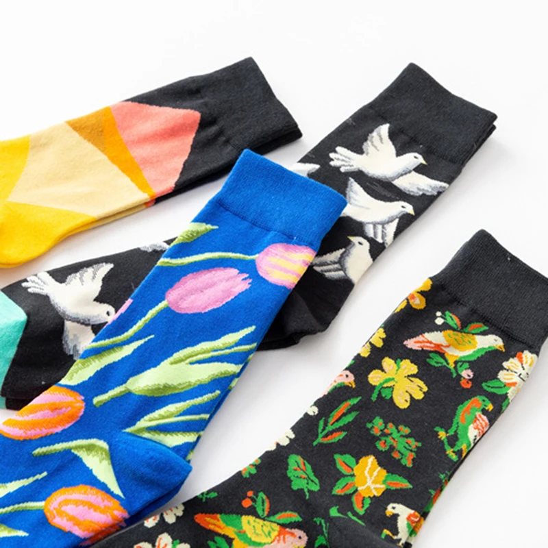 1 пара, Лидер продаж, женские носки, Harajuku, креативные, художественные, цветочные, с рисунком птицы, хлопковые Дышащие носки, повседневные, женские, забавные носки
