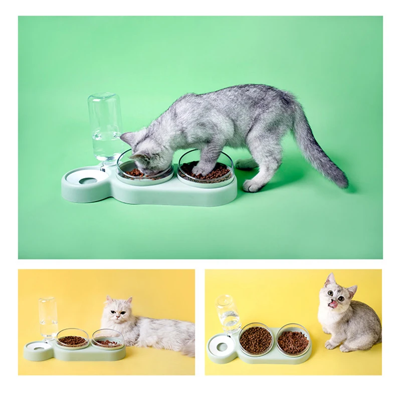 Конструкция двойных мисок: набор из 2-х мисок для еды, еще один-автоматический диспенсер для воды.