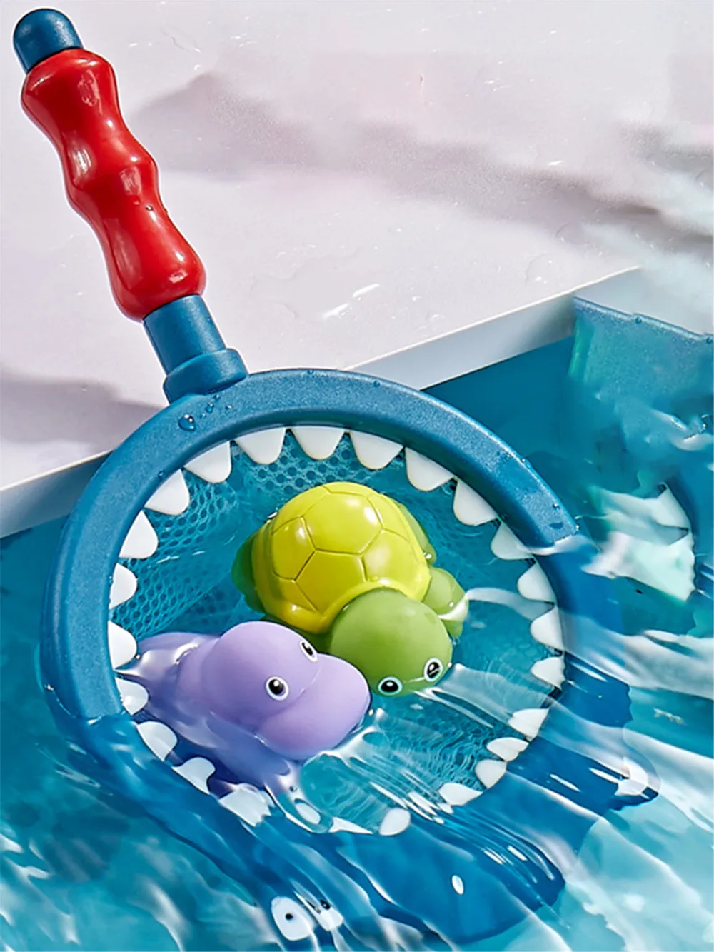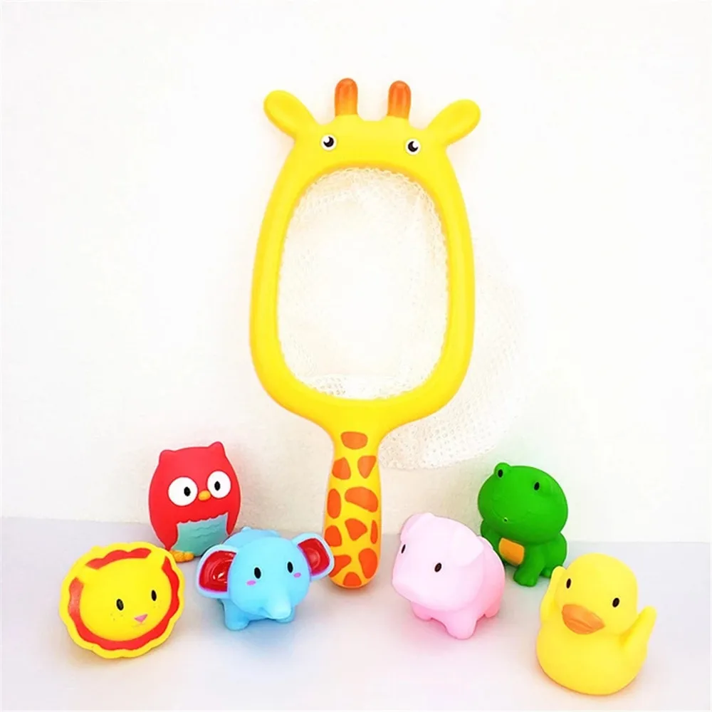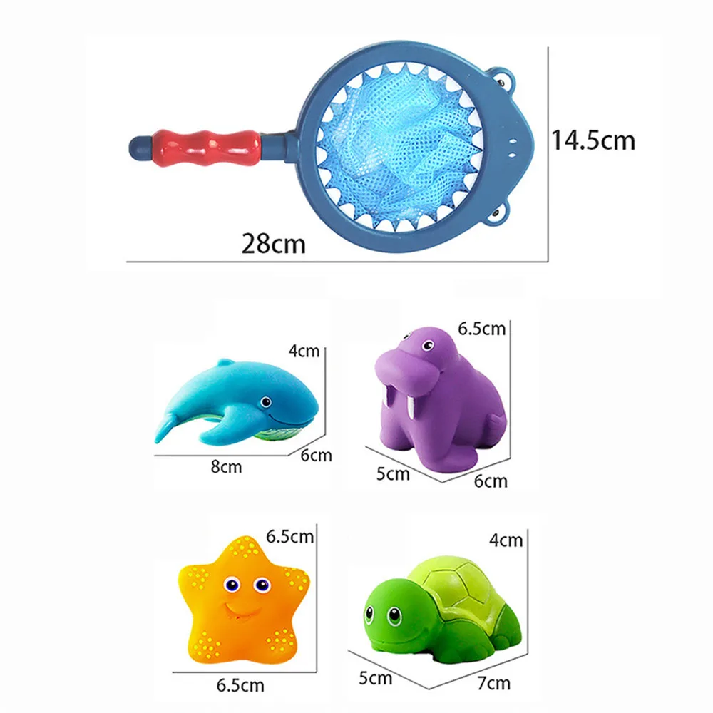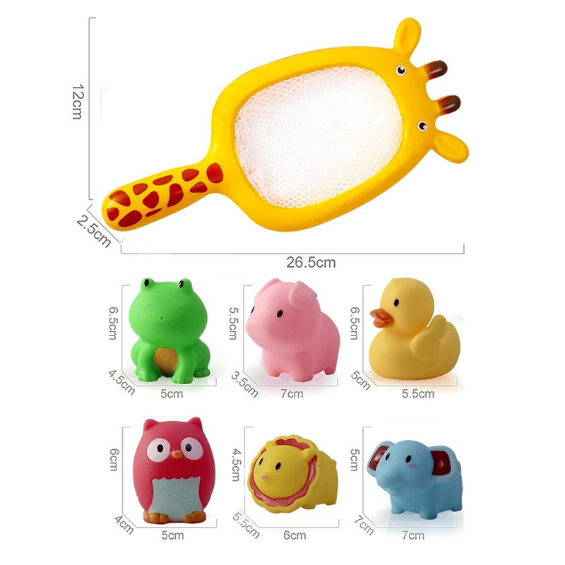 Набор игрушек для ванны содержит: 1 рыболовную сеть, 6 животных.