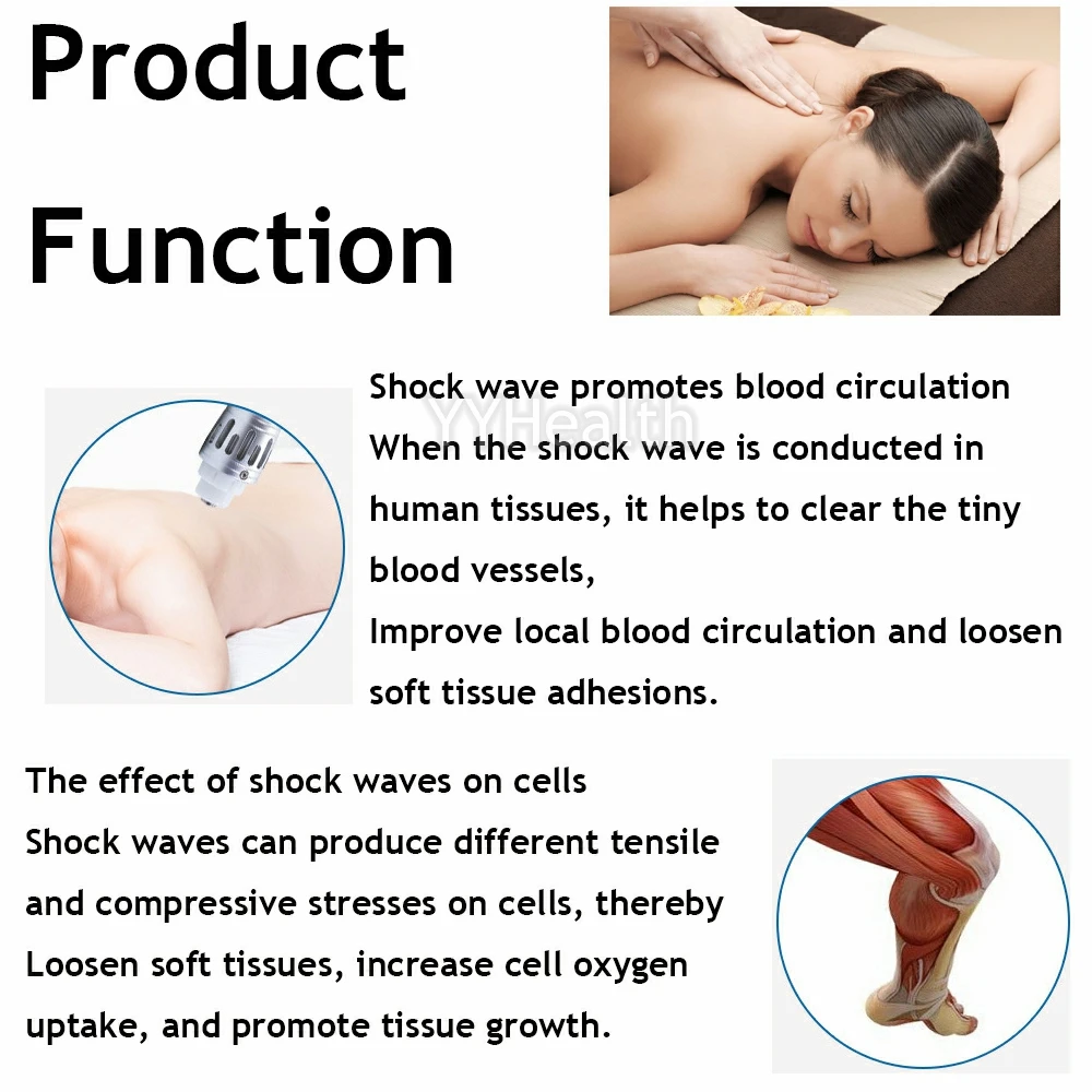 Есть большая разница в том, что сфокусированные проникают с большей точностью и большей глубиной Эта машина является радиальной и сфокусированной ударно-волновой машиной. Может возникнуть боль из широкого спектра тканей человека, которая оказывает хороший лечебный эффект. 1. Терапевтический аппарат Shock wave pain-это физический механизм, проходящий через Среднюю (воздушную или газовую) Проводимость механического волнового импульсного давления, производимый пневматическими импульсными звуковыми волнами в точную баллистическую ударную волну, движение и позиционирование зонда через терапию, может произойти боль от широкого спектра тканей человека, имеет хороший эффект лечения. 2. Ударная Волна может изменить химическую среду места повреждения, что делает ткани производят и отпускают химикаты, предотвращающие боль. Между тем, ударная волна может разрушить мембрану болевого рецептора, подавить производство и распространение болевых сигналов. Кроме того, ударная волна вызывает выработку эндорфина, уменьшая чувствительность места повреждения к боли. 3. Увеличение проницаемости клеточной стенки, стимуляция микроциркуляции (крови, лимфы), высвобождение вещества P, уменьшение немиелиновых нервов, высвобождение оксида азота (вазодиляция, увеличение метаболизма клеток, неоангогенез, противовоспалительный эффект), стимуляция факторов роста (неогенез сосудов, костей, коллагена) и стимуляция стволовых клеток. 4. Облегчение боли и лечение подошвенного фасциита, сухожилия Ахилла, воспаления сухожилия плечевого сустава и кальцификации, боли в паху, эпикондилита. 5. Больные могут чувствовать первые эффекты непосредственно после лечения, облегчение боли/уменьшение после нескольких сеансов лечения, хорошее соответствие лечения.