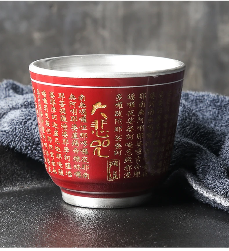Керамическая чашка из стерлингового серебра 999 пробы, буддийские Писания, чашка ручной работы, одна чашка для дома, кунг-фу, черный чай