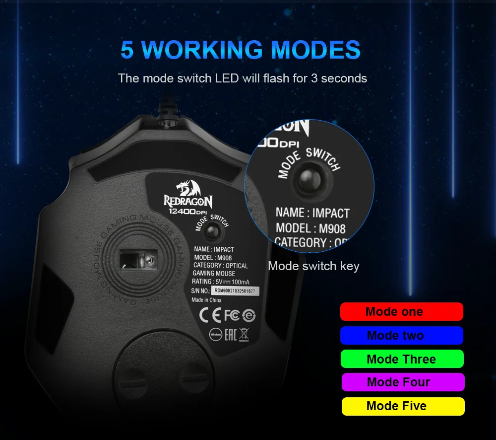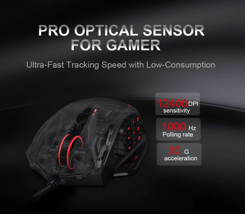 Отзывы о Redragon Impact M908 USB Проводная RGB игровая мышь 12400 точек/дюйм 17 кнопок программируемая