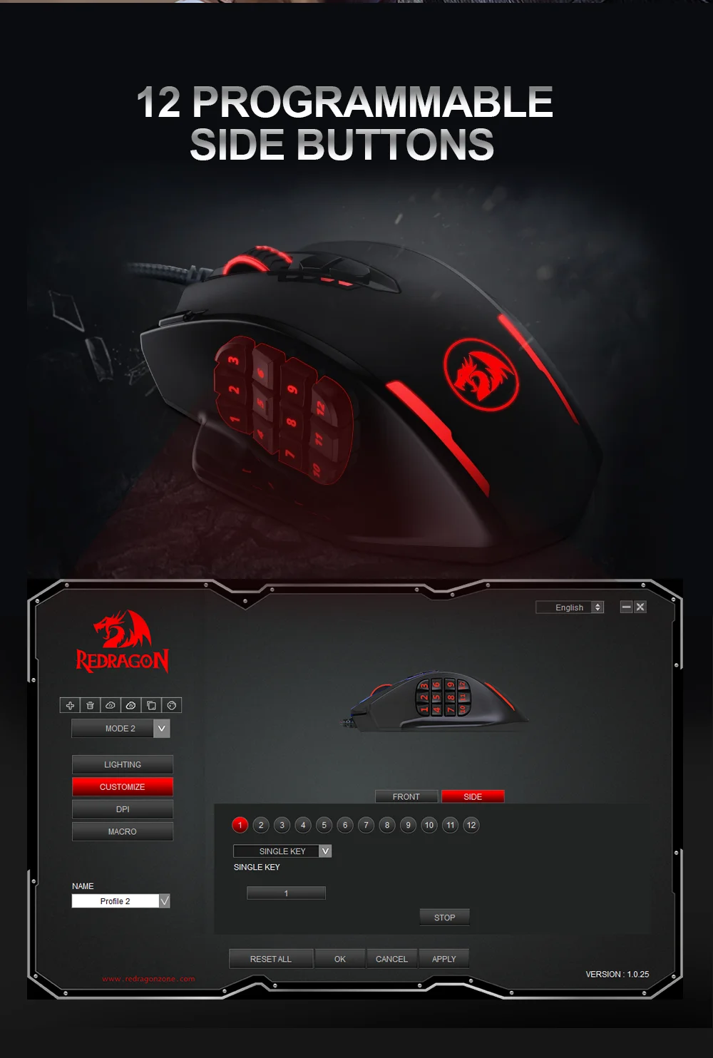 Непревзойденная поддержка драйвера-16 кнопок, включая 12 боковых кнопок и 16,8 миллионов цветовых эффектов освещения, могут быть настроены с помощью вашего собственного программного обеспечения, к победе в том, как вы хотите.