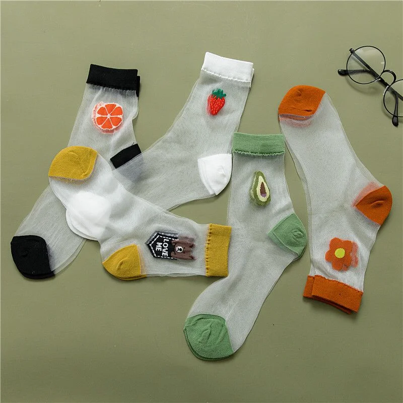 Отзывы о Носки женские хрустальные шелковые с изображением кота котенка цветка медведя