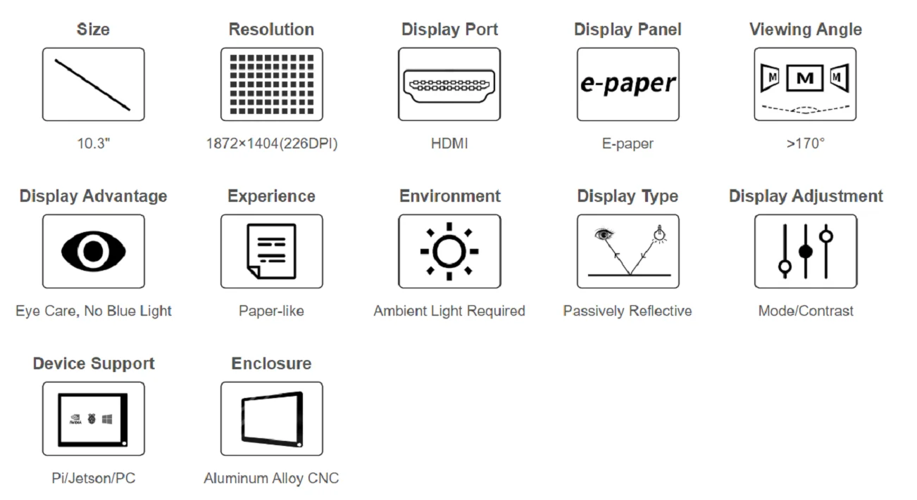 10,3 дюймовый E-Бумага монитор, HDMI, Дисплей Интерфейс, ухода за кожей вокруг глаз, поддерживает Raspberry Pi/Jetson Nano/ПК