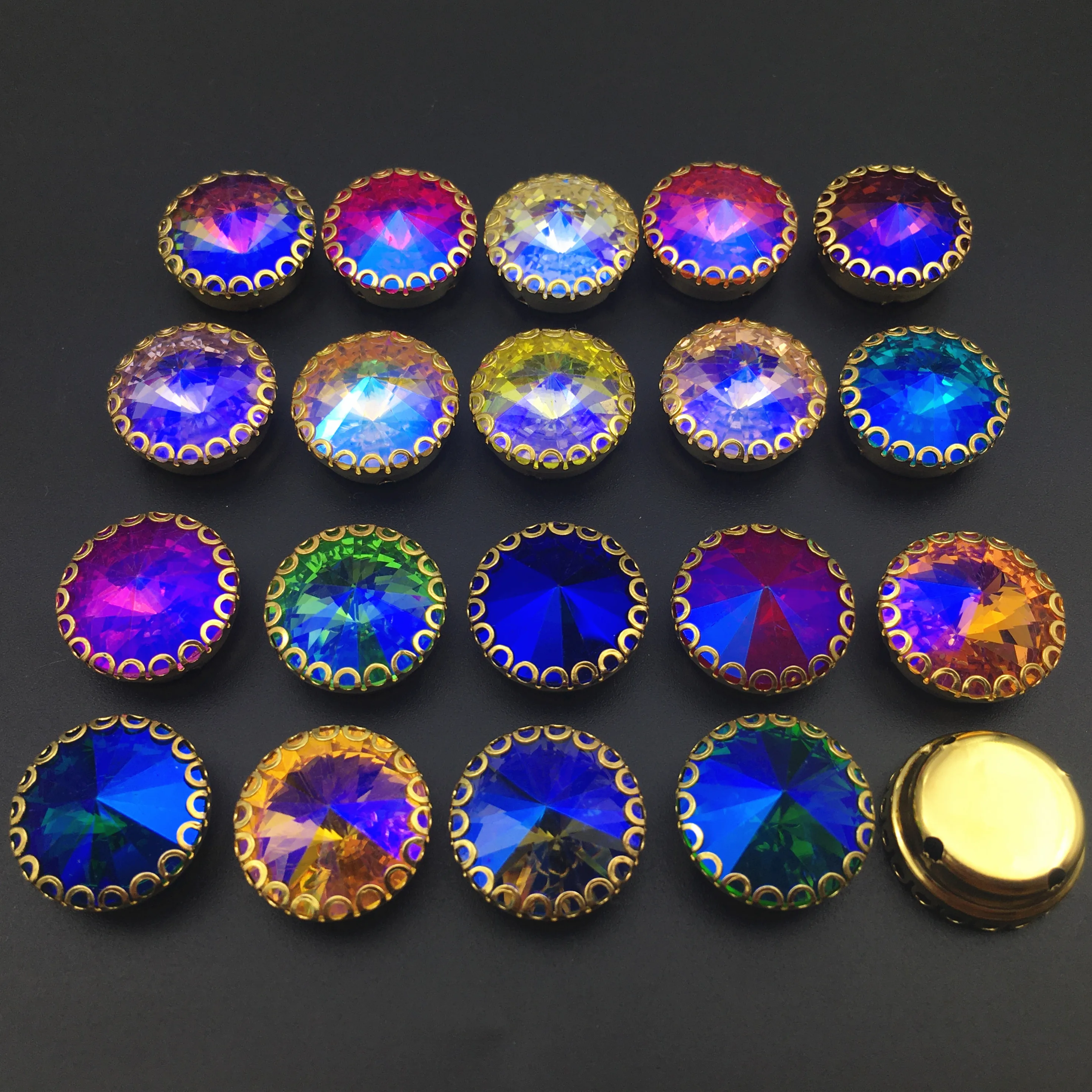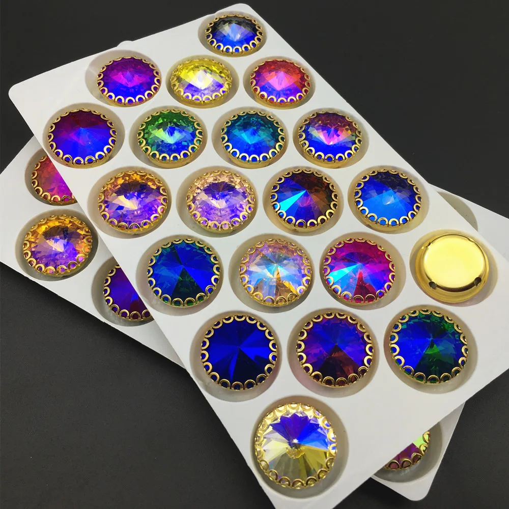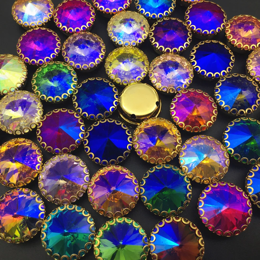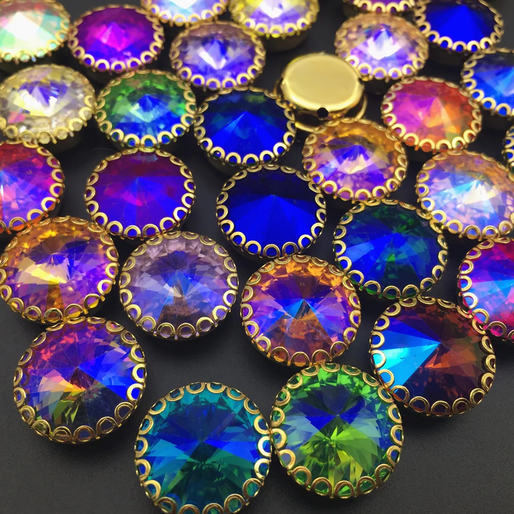 Отзывы о С плоским основанием АВ цвета стразы Круглый Rivoli шьют на расшитое золотистым