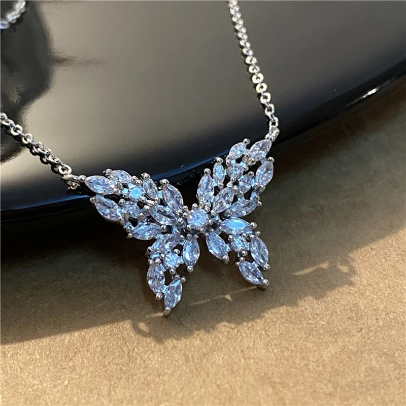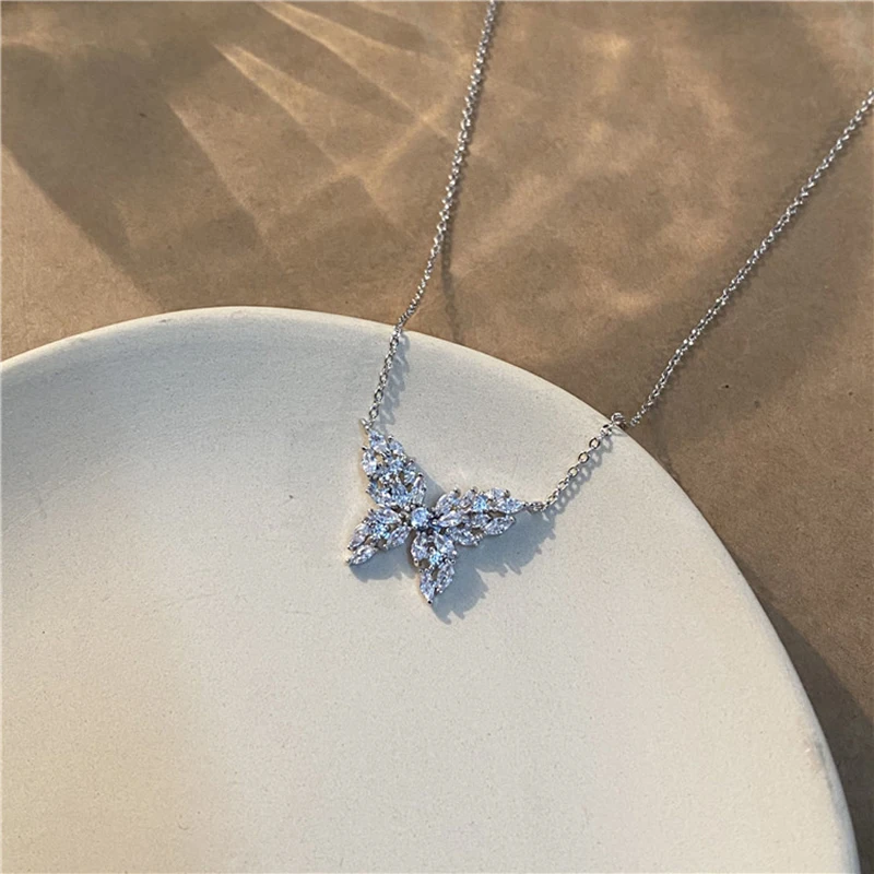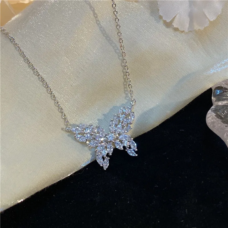 Огромный бутон Ins горячая Распродажа циркониевое ожерелье с бабочкой очаровательное шикарное CZ элегантное колье Воротник модные ювелирные изделия бохо Bijoux для женщин Тип ожерелья: ожерелье с подвеской Тип цепи: звенья цепи Материал: медь + Платиновое покрытие Подходит Пол: женщин Цвет покрытый платиной Длина: 37 см + 6 см