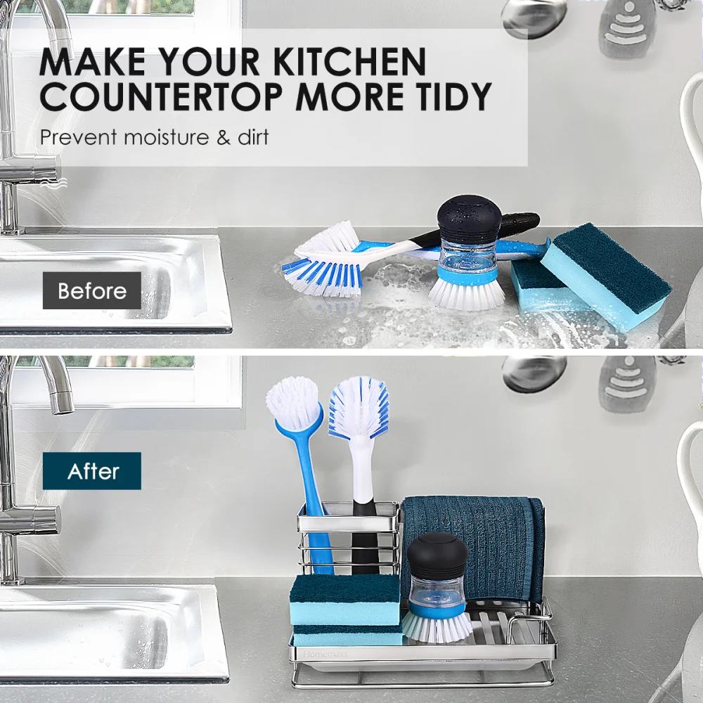 -Наш органайзер для кухонной раковины идеально подходит для организации губки, кистей и жидкого мыла, сохраняет столешницу чистой и сухой.