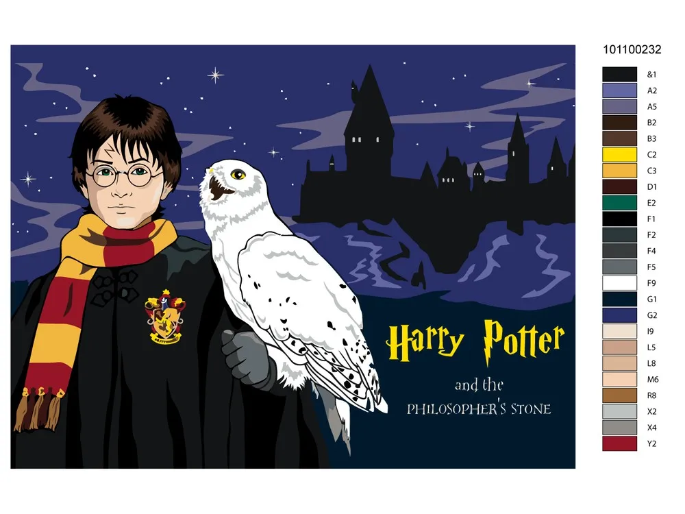 Картина по номерам "Гарри Поттер" - это набор для создания готового произведения искусства. На холст нанесён контур будущего шедевра. Все области пронумерованы и соответствуют номерам красок. Всё, что нужно сделать раскрасить каждый сектор тем номером краски, который в нём проставлен. Все оттенки заранее подобраны, а контуры специально проработаны профессиональными художниками. Набор для создания картины "Гарри Поттер" подойдёт для любого возраста и не требует художественных навыков. А готовая работа отлично подойдёт в качестве подарка или украшения к интерьеру. В набор входят: - Холст на подрамнике; - Кисточки: 2 шт.; - Акриловые краски: 24 шт.; - Электронный контрольный лист открывается при наведении смартфона на QR-код на коробке