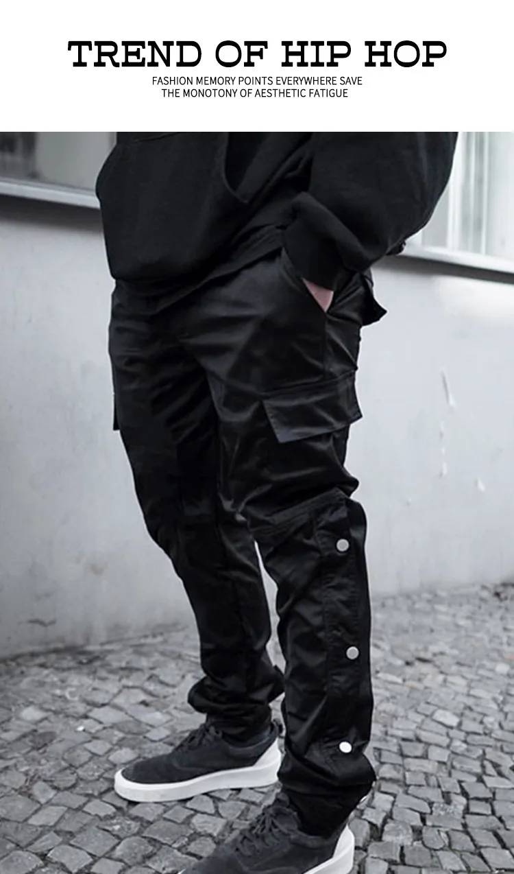 Men's Fashion Hip Hop Pants Spring And Autumn New Trendy Brand Multi-Pocket Trousers Solid Color Loose Stra