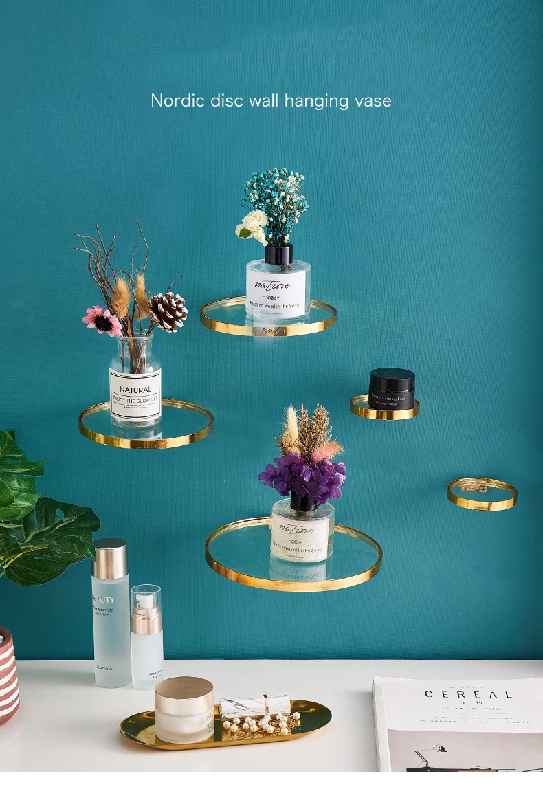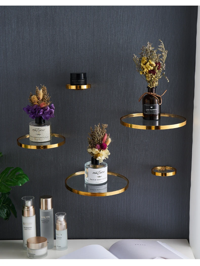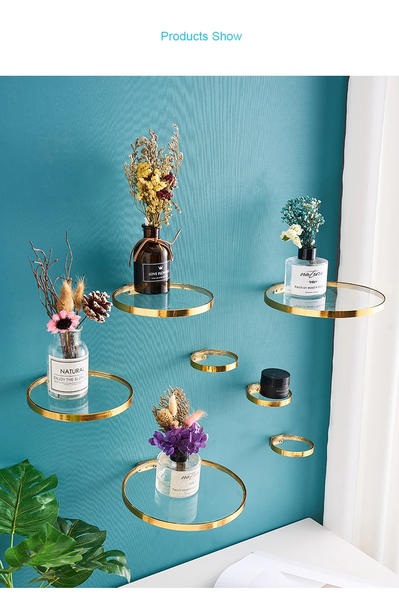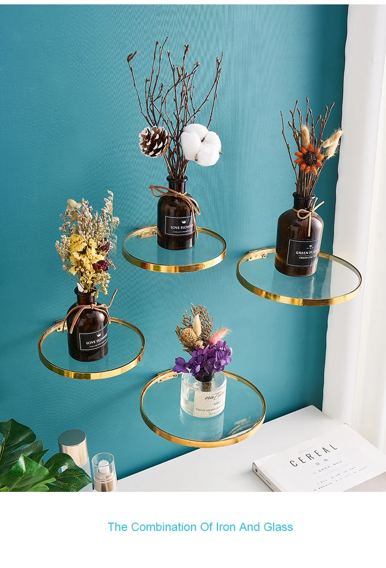 Креативная металлическая настенная полка, настенная полка с золотым зеркалом, простое украшение, горшок для растений, держатель для столовой, дома, гостиной, ремесла