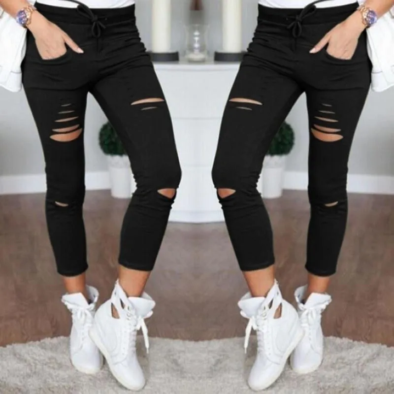 Отзывы о Женские джинсовые брюки-карандаш с завышенной талией рваные стрейчевые 2021 -