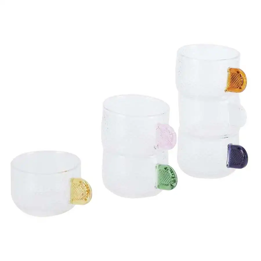 1. Высококачественный материал из боросиликатного стекла, простой, прочный и длительный срок службы.2. Удобная эргономичная ручка, каждая ручка чашки окрашена для легкого различия.