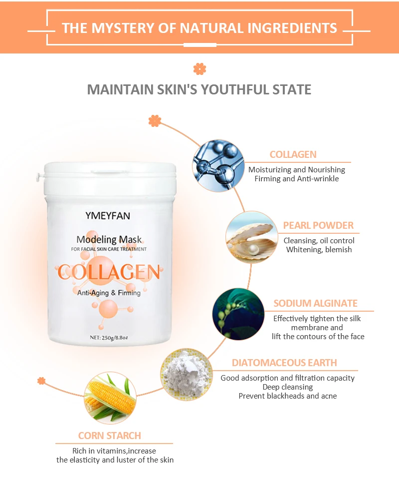 1X250g моделирующая маска порошок, может быть использован для 10-12 процедур