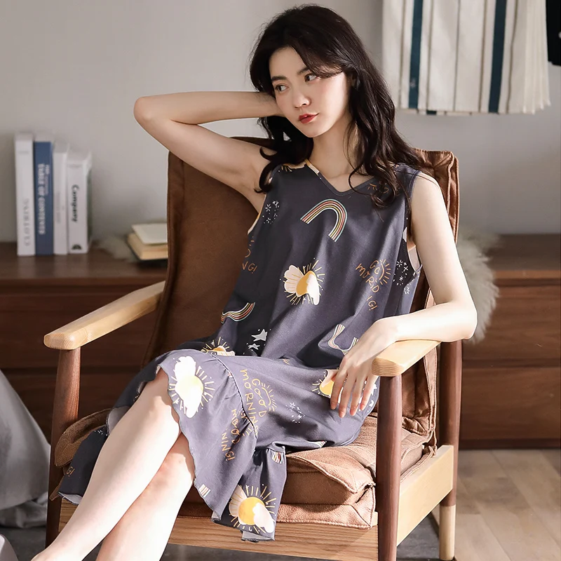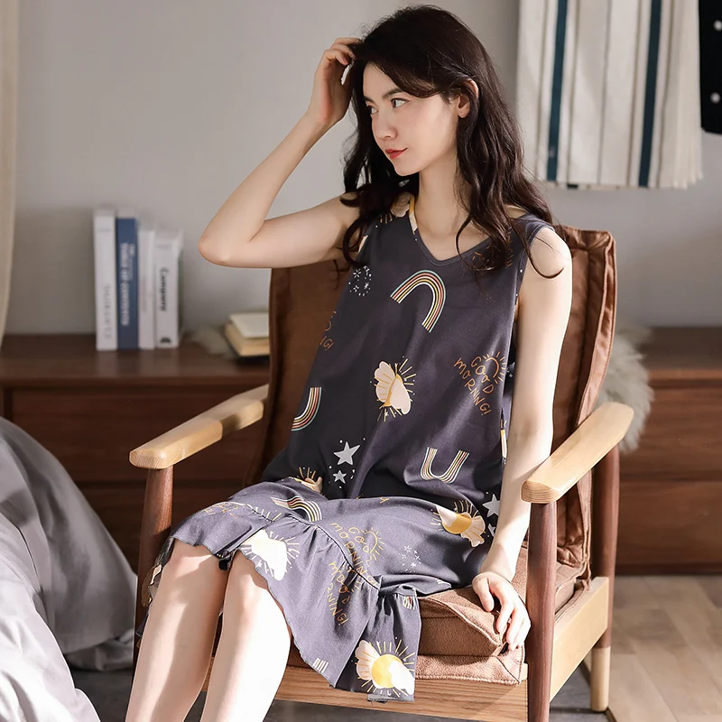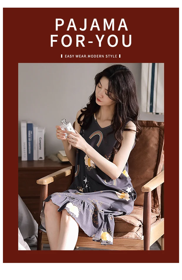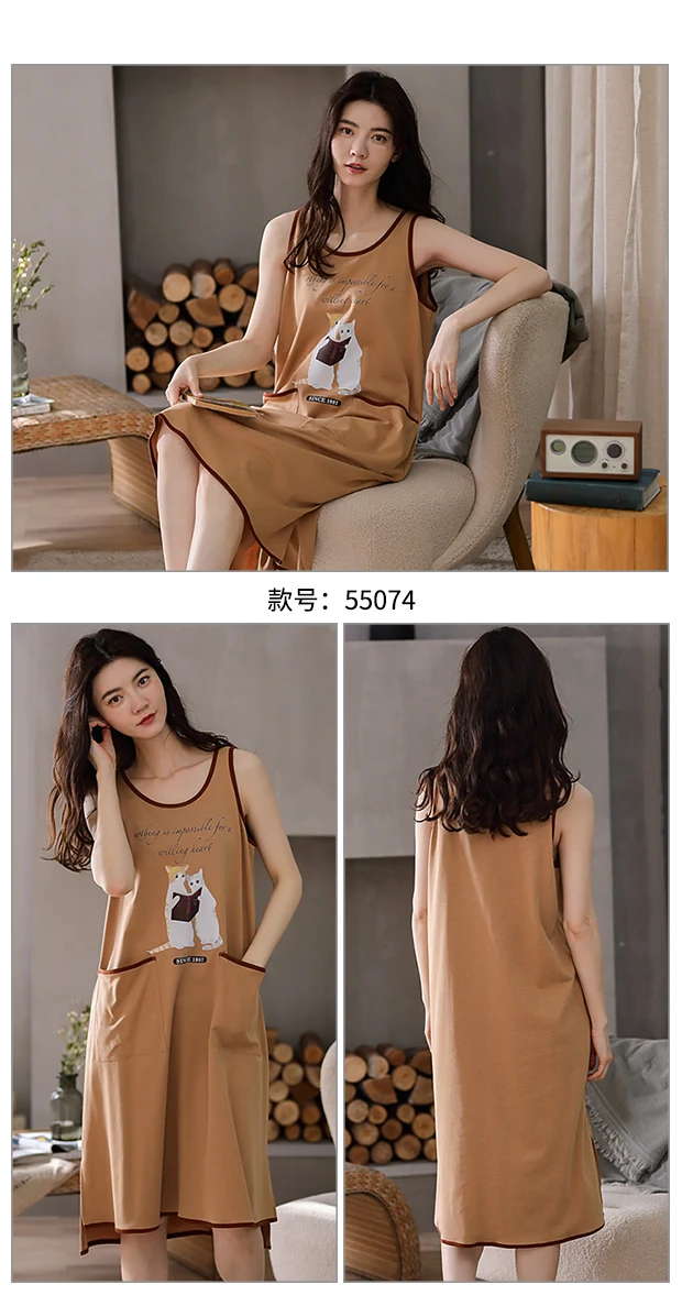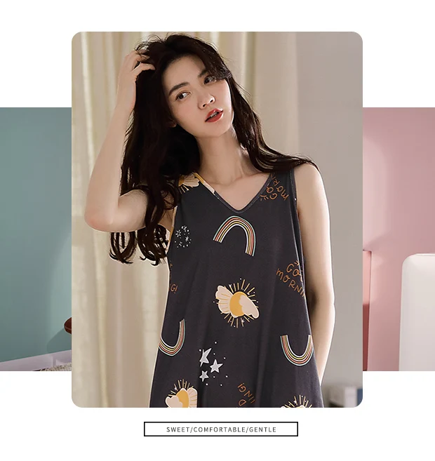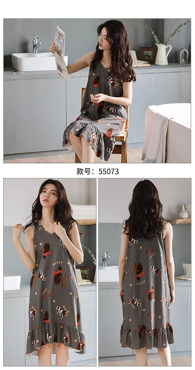 Отзывы о Летнее платье размера плюс хлопок женская одежда для сна с изображением милой