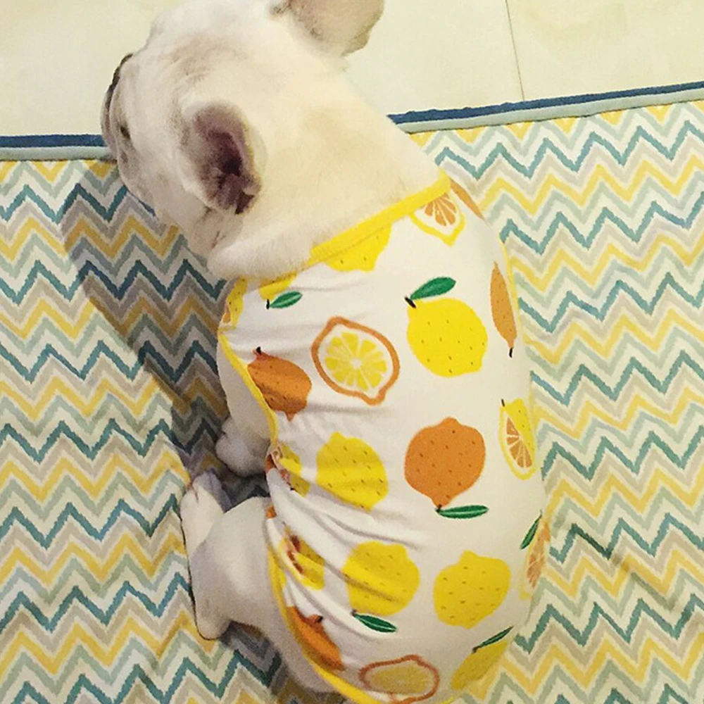Жилеты для собак с лимонами, летняя одежда для домашних животных, рубашки, жилеты для собак с изображением французского бульдога, дышащие жилеты без рукавов для собак