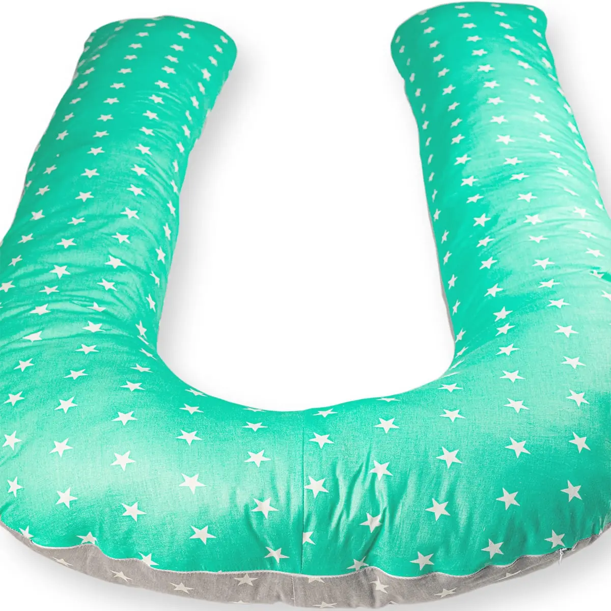 Чехол формы U бренда «Vensalio» на подушку для беременных и кормящих "Звезды", мятный с серым.