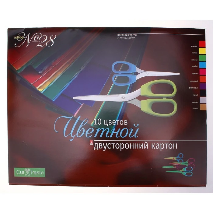Картон цветной двухсторонний А3, 10 листов, 10 цветов "№28"