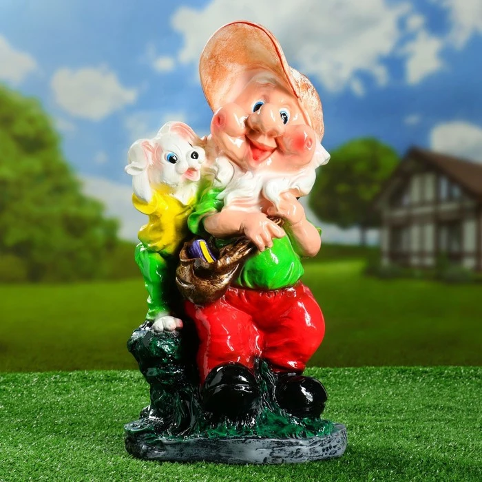 Отзывы о Садовая фигура "Гном с зайцем" разноцветный 53 см | Дом и сад