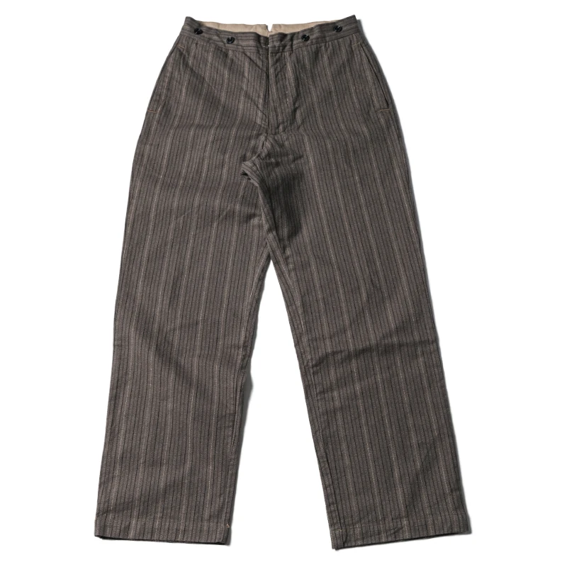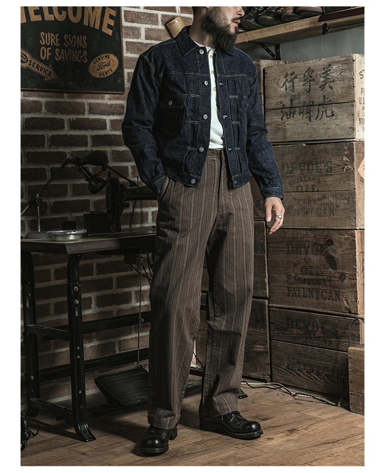 ⦁ Вдохновлен рабочего класса Штаны в 1920s и 30с Отсчетом Made изготовлено из окрашенной в пряжу полосатой ткани 12 унций, 100% хлопок Cдюймовая задняя часть для крепления Пуговицы пуговицы для подтяжек для пары с подтяжками Designed разработан с высоким подъемом, прямой и свободный, но не слишком мешковатый, подходит для вечного силуэта, подходящего для всех случаев Concealed скрытый карман находится чуть ниже пояса ⦁ Два боковых передних кармана и два свариваемых задних кармана ⦁ Предварительная стирка, не требует усадки