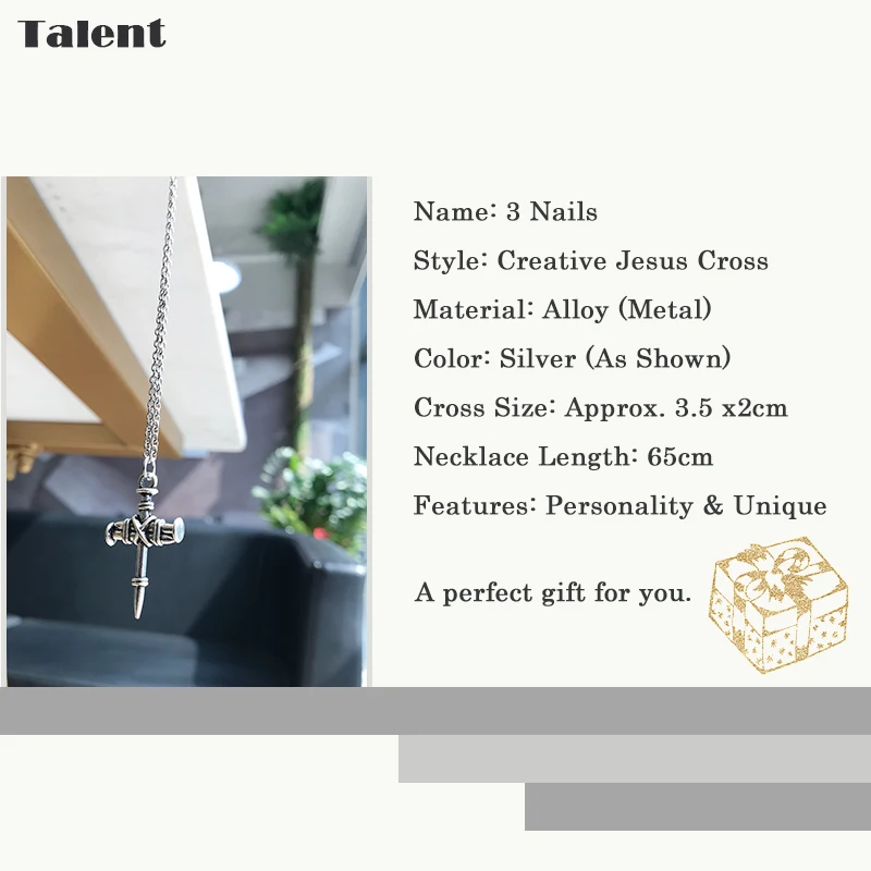 Талант 3 ногти Винтаж Иисус крест модное ожерелье Серебряный цвет ожерелье для мужчин женщин Подвеска Украшения Подарки цепь сплав металл