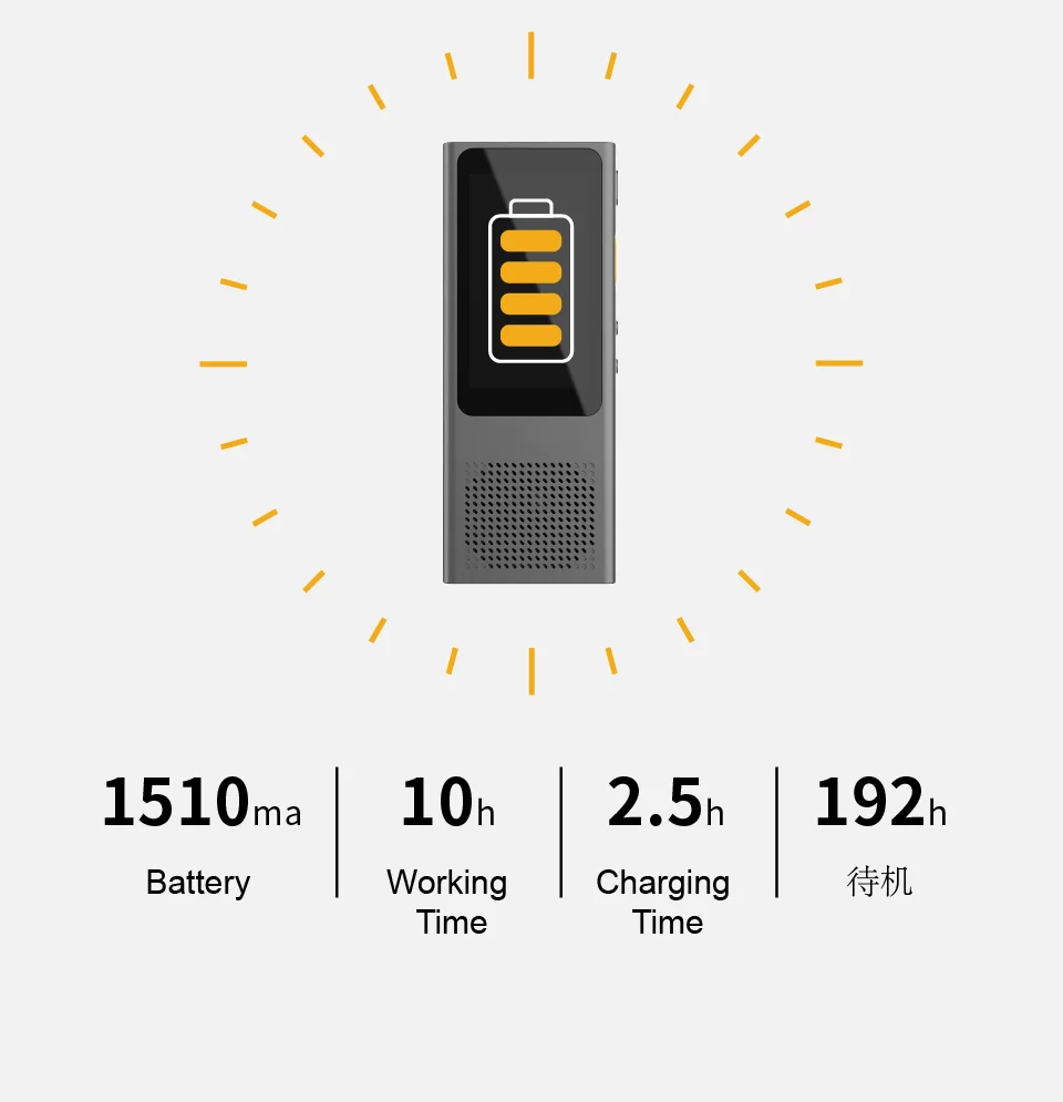 Минуты поддерживают перевод в режиме реального времени на 104 языка, помогая вам пересечь языковые барьеры на встречах с иностранными языками. С экраном 2,45 дюйма и переводом в реальном времени минуты-лучший костюм для деловых людей.