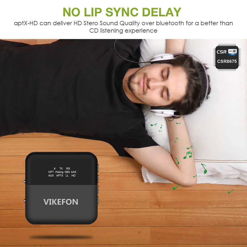 Примечание:Если вы хотите использовать его для просмотра телевизора и просмотра фильмов на вашем ПК, пожалуйста, убедитесь, что наушники bluetoothПоддержка APTX с низкой задержкой, В противном случае это будет иметь небольшую задержку звука. Если вы не знаете, как выбрать bluetooth наушники APTX с низкой задержкой, рекомендуется VIKEFON A3S, перейдите по ссылке «купить»: