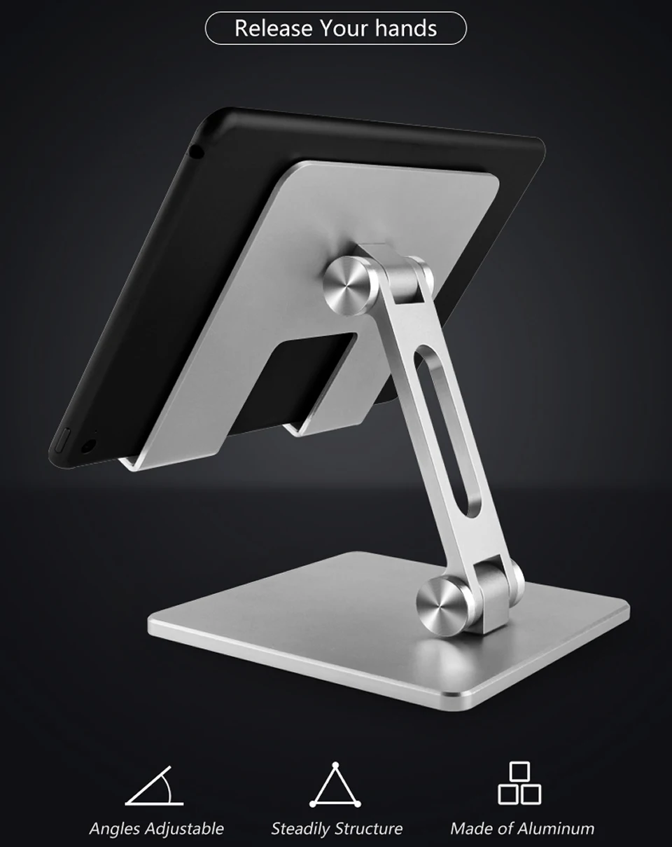 [Прочный и долговечный] изготовлен из высококачественного алюминиевого сплава, повышенной прочности, более легкого веса, долговечен в использовании. Резиновые накладки подставки для планшета могут защитить ваше устройство от ежедневных царапин и скольжения.