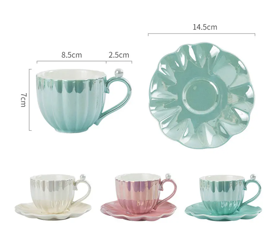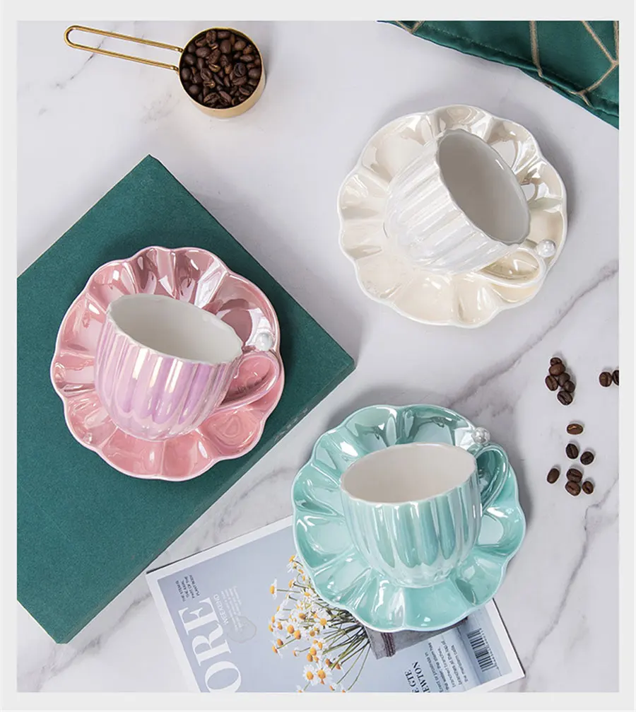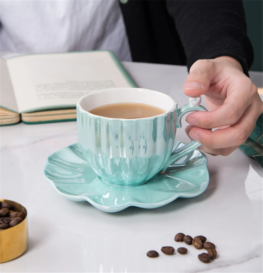 Перламутровая керамическая кофейная чашка, набор блюдец, простой однотонный гальванический фарфор, чашка для дома и офиса, фарфоровые чашки