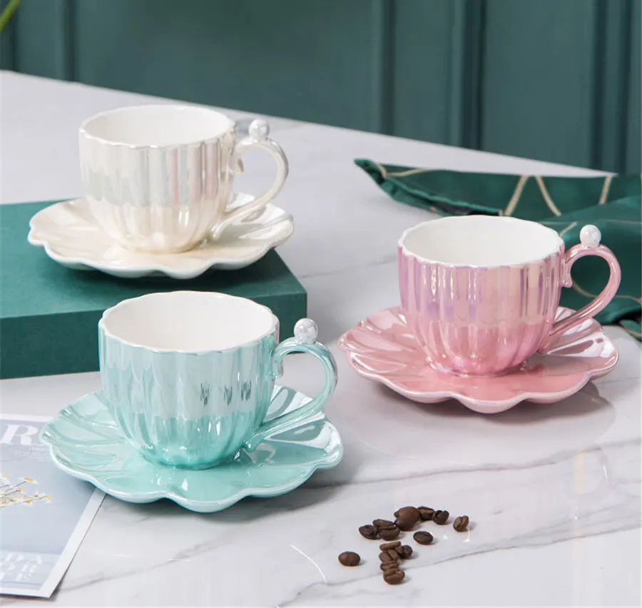Отзывы о Наборы перламутровых керамических кофейных чашек ракушек блюдец простые