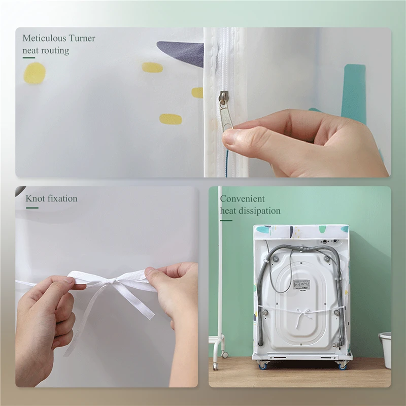 Полуобмотка с трех сторон, так что стиральная машина может рассеивать тепло при работе. Удобный дизайн-этот чехол разработан с застежкой-молнией, что позволяет открывать машину, не снимая крышку, просто и удобно.