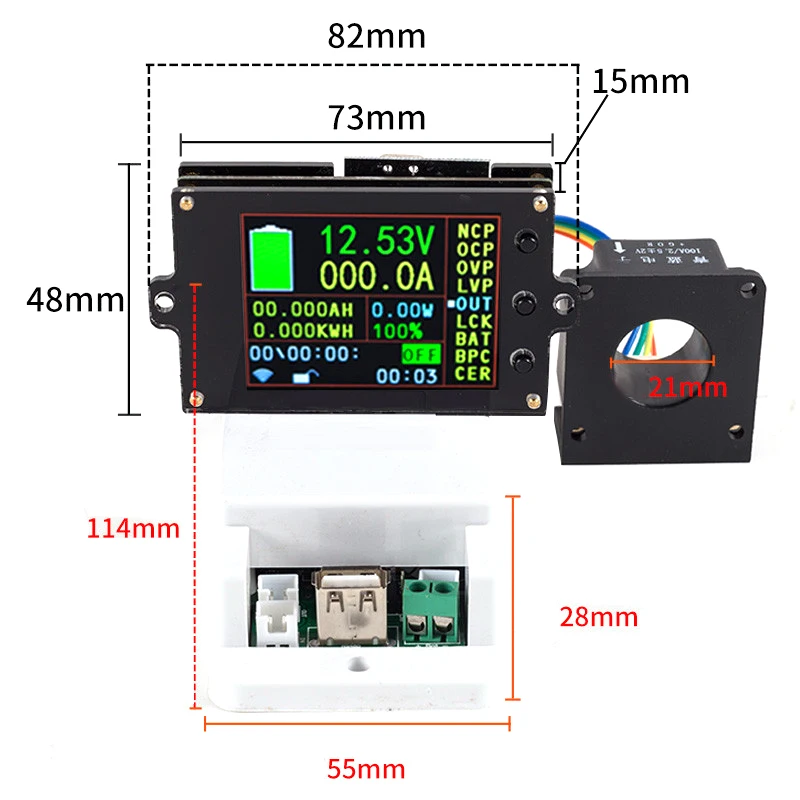 Панель прибора может питаться от обычного адаптера питания 5 В (например, зарядной головки сотового телефона), вы также можете использовать usb-порт на измерительной плате для источника питания панели дисплея.