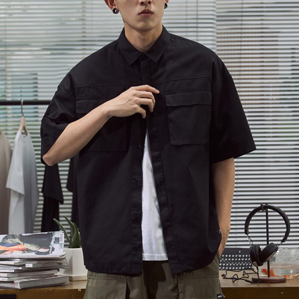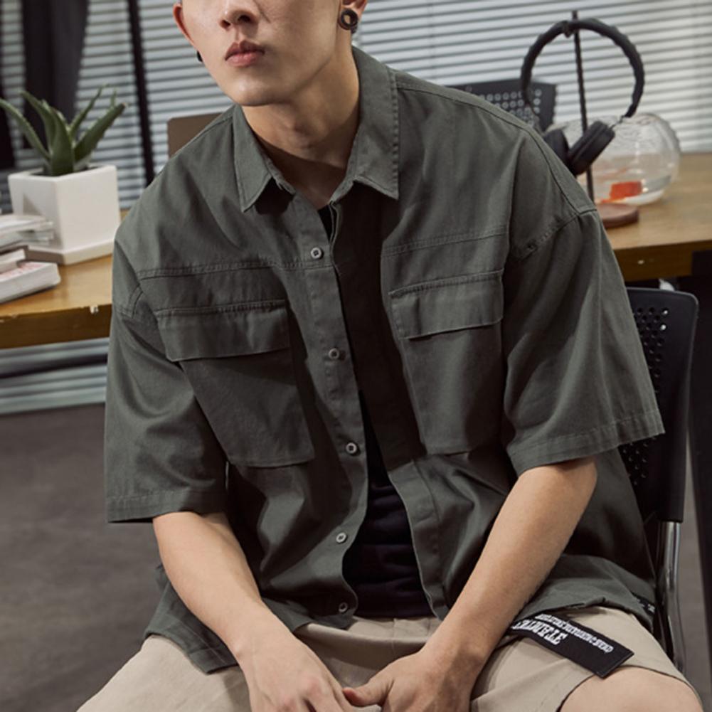 Рубашка с короткими рукавами и карманами; Однотонная Свободная рубашка на пуговицах для школы