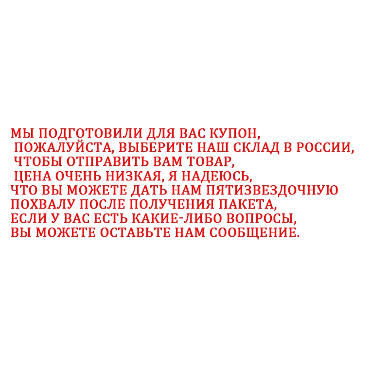 3) Пожалуйста, свяжитесь с нами, прежде чем оставить нейтральный (3 звезды) или отрицательный (1-2 звезды) отзыв. Мы сделаем все возможное, чтобы решить проблему и подарить вам счастливое настроение покупок здесь. Большое спасибо!