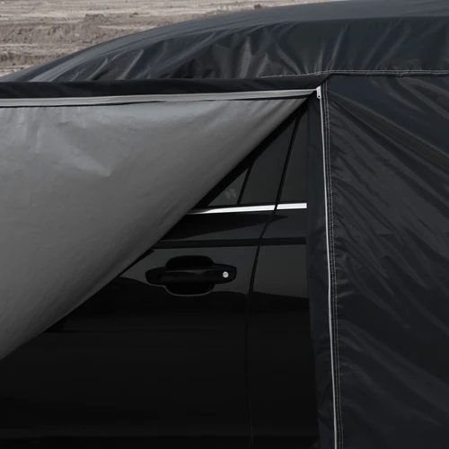 Ветрозащитная конструкция: Четырехколесная ветрозащитная эластичная лента надежно фиксирует крышку автомобиля, не боясь ветра |