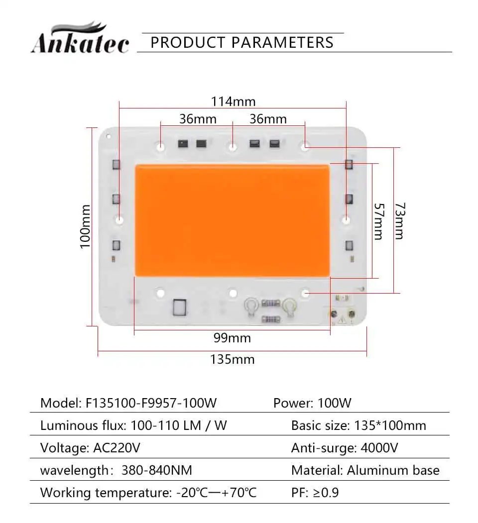 2. Название продукта: 100W 150W 200W Высокая Мощность интегрированный чип cob