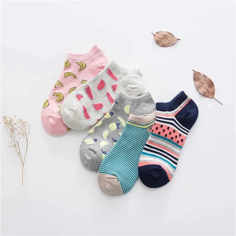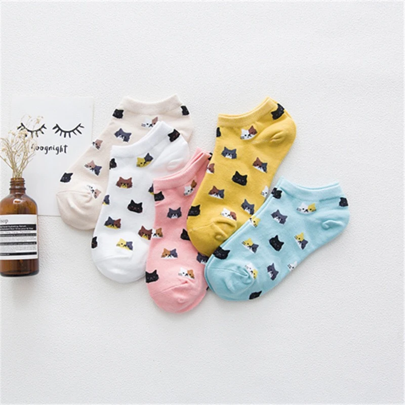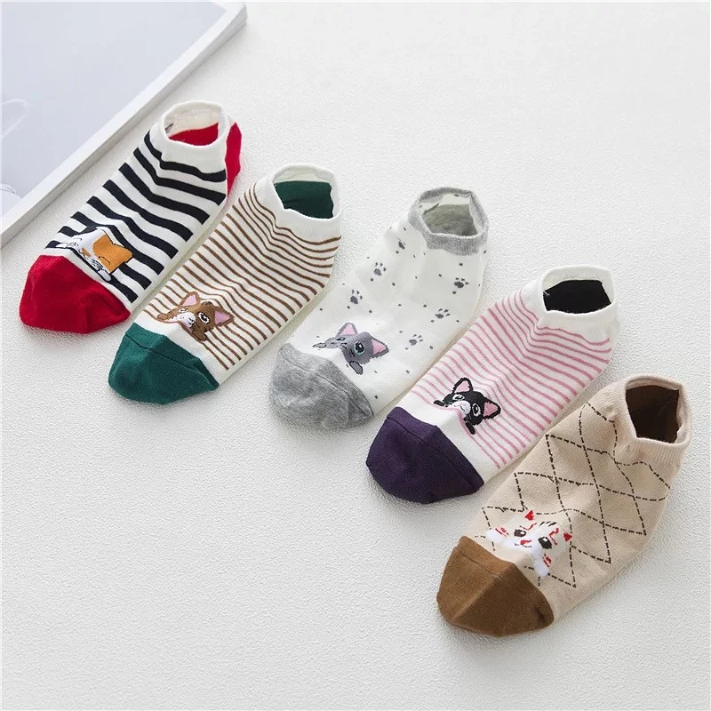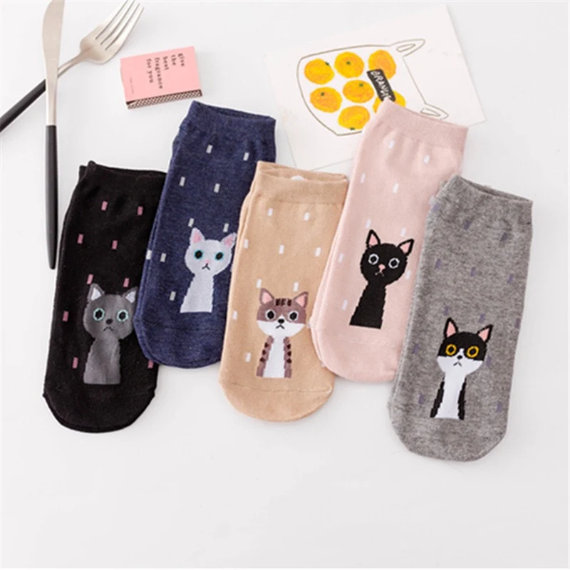 Отзывы о Носки женские короткие в полоску хлопковые с мультяшными животными кошкой