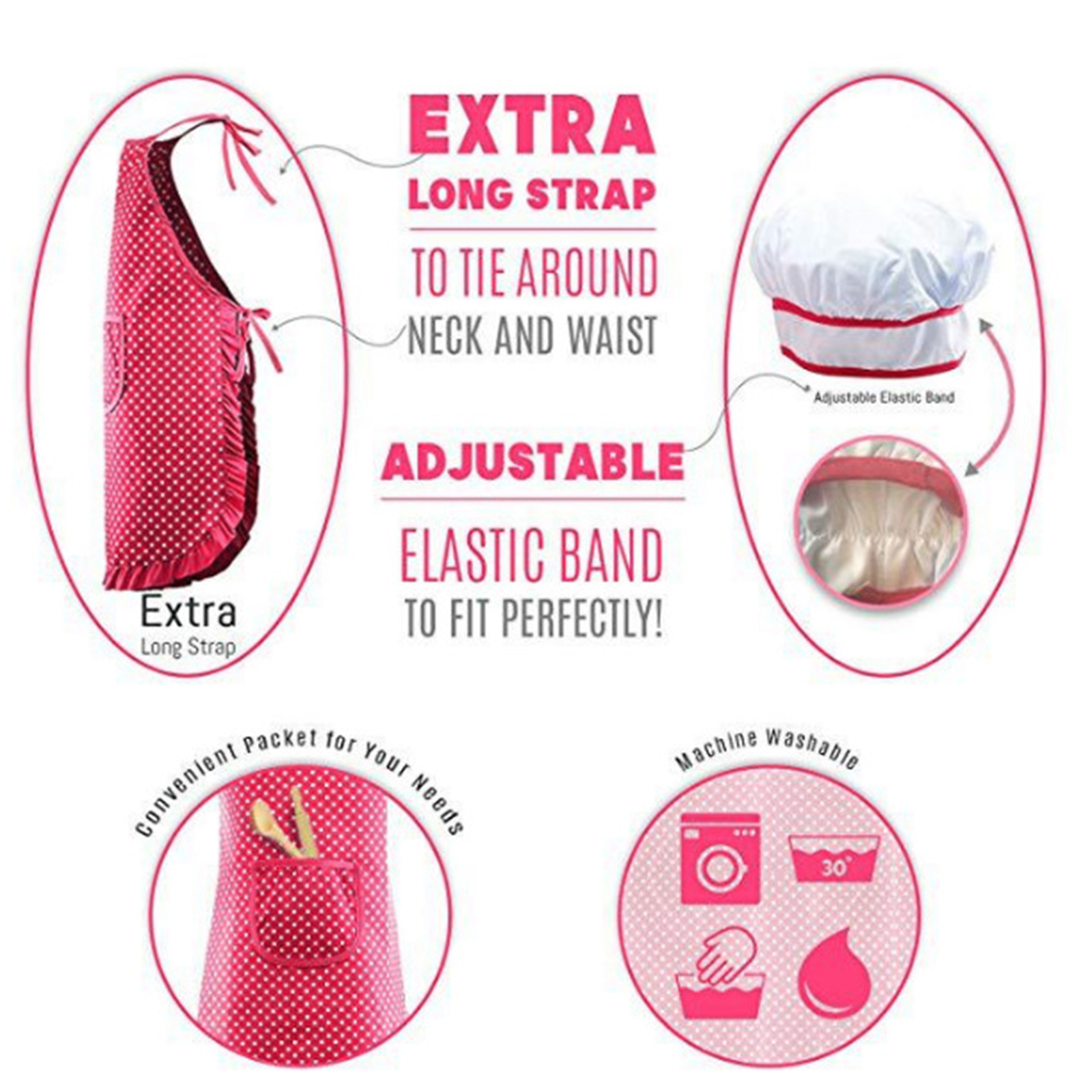 Восхитительный розовый фартук в горошек и шапка с оборками. Девушки любят много!