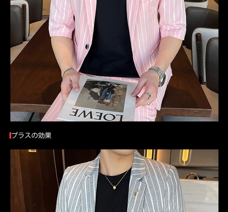 Розовые мужские костюмы в полоску, приталенный светильник, синяя праздничная одежда для свадьбы, 2 предмета, серые костюмы для бойфренда, летние платья, Капри, блейзеры