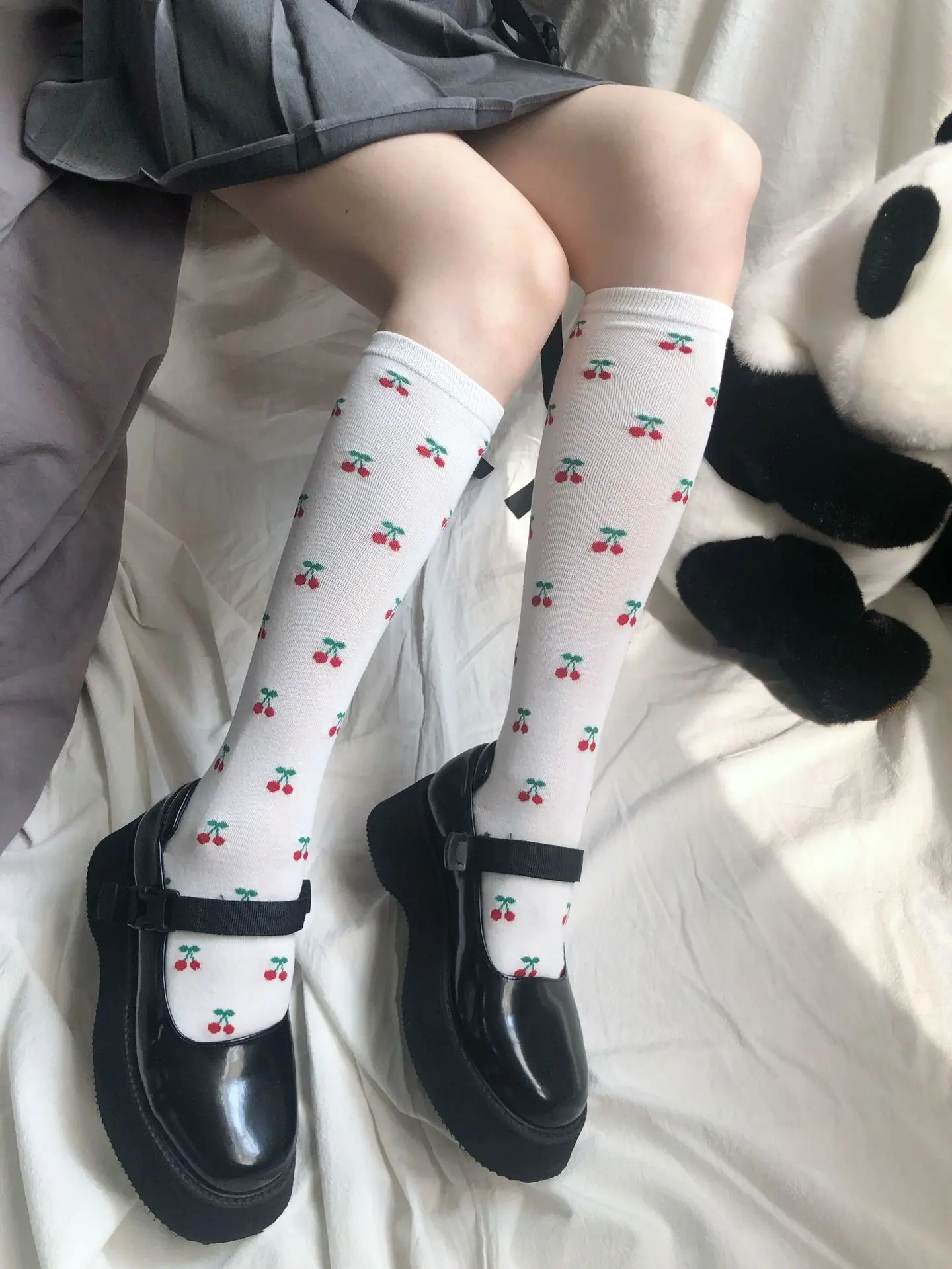 Отзывы о Черный белый цвет чулки в цветочек хлопок с маленькой Вишенкой на Лолита Чулки