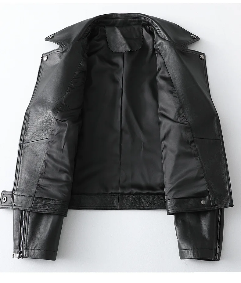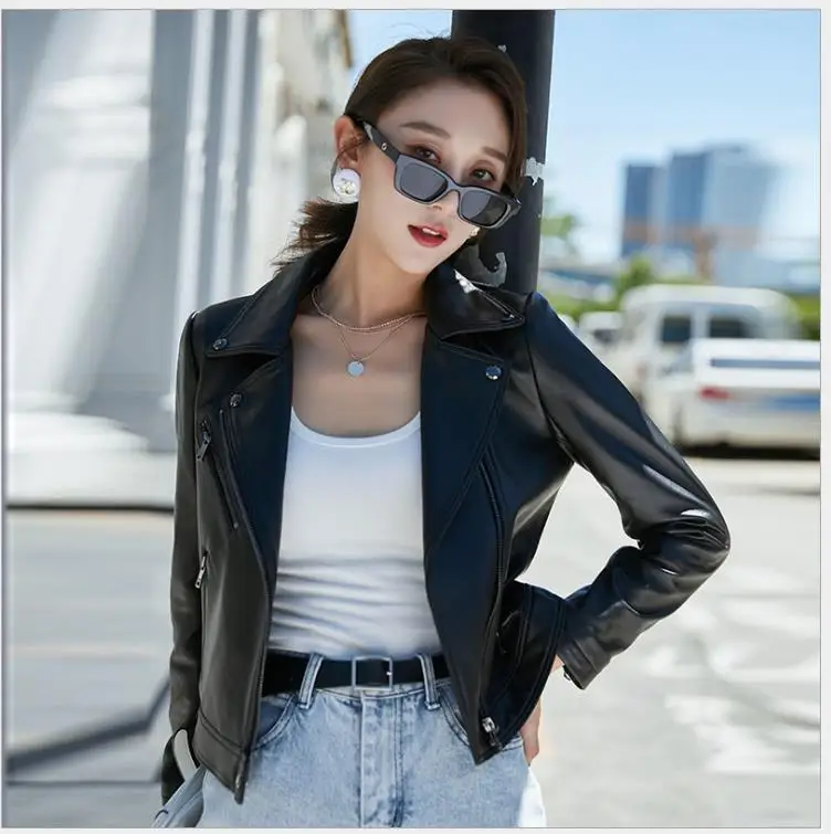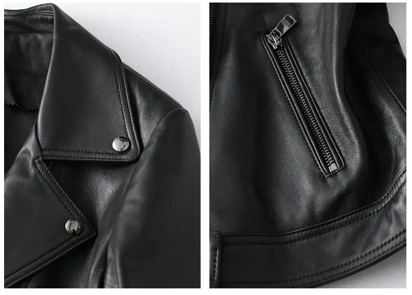 Отзывы о Куртка женская из овчины Классическая черная приталенная короткая кожаная -