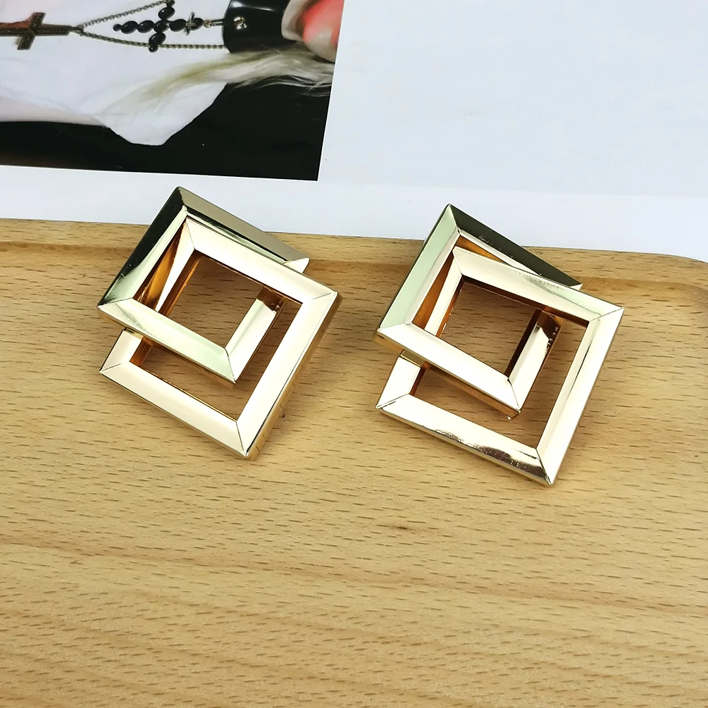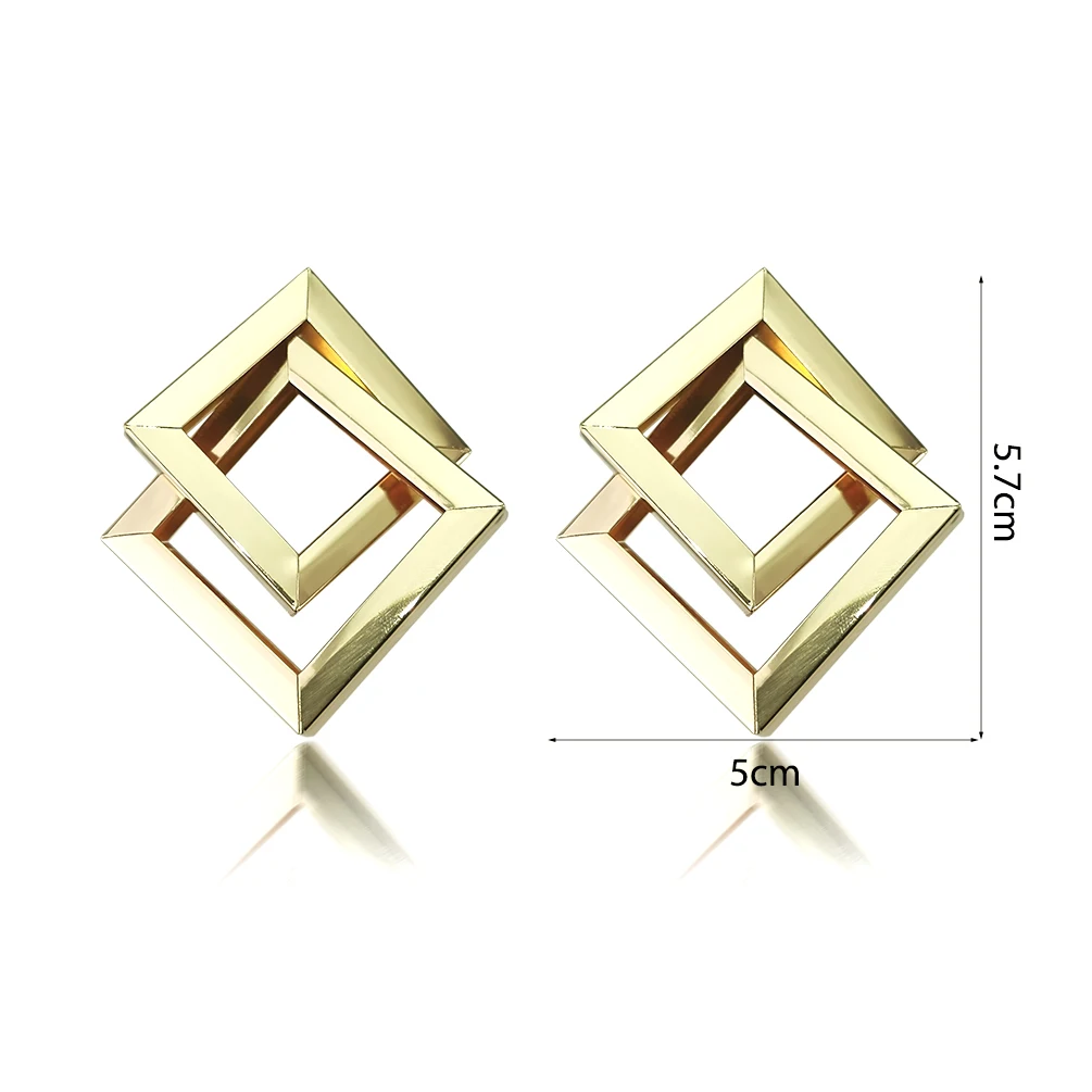 Отзывы о Большие квадратные серьги-гвоздики золотого цвета металлические геометрические