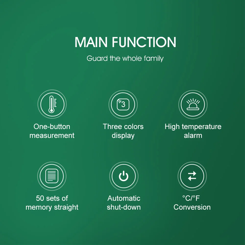 2. Простое управление: продукт поддерживает измерение температуры одной кнопкой.