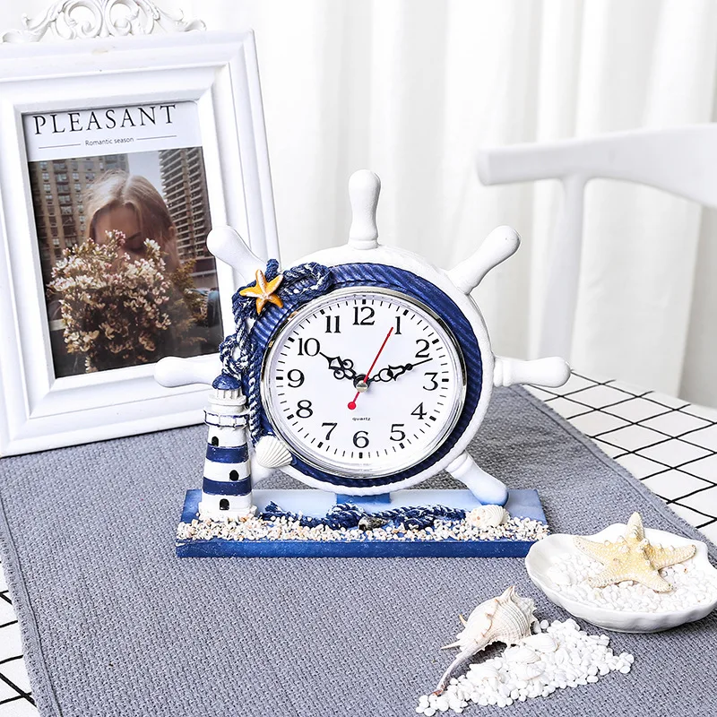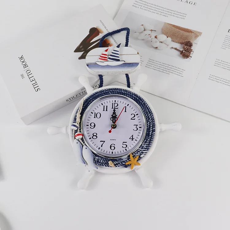 Дерево Якорь часы висит настенные часы в средиземноморском стиле штурвал настольные часы для спальни гостиной Морской Декор