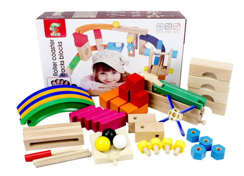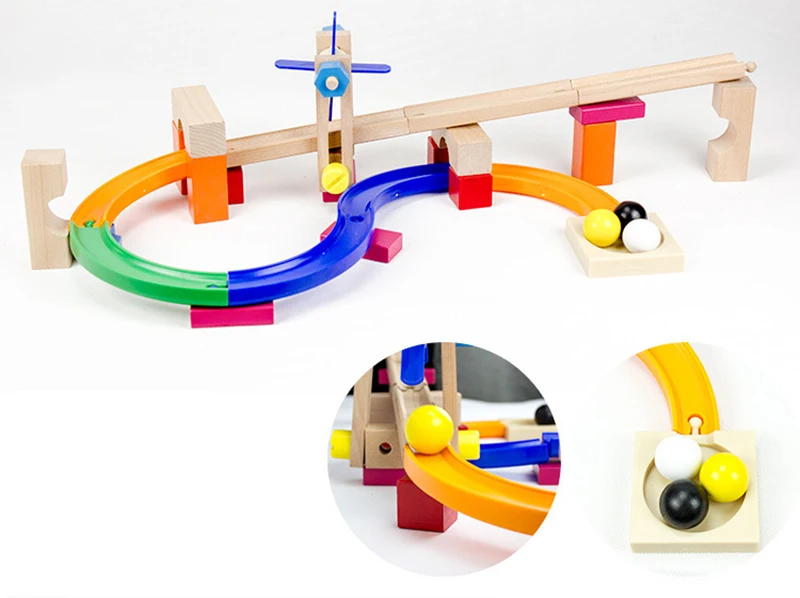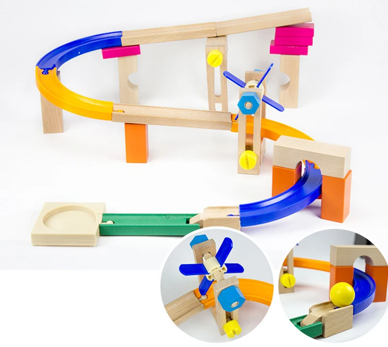 Деревянные интеллектуальные головоломки раннего обучения горки трек строительные блоки мяч трек строительные блоки подарки для детей