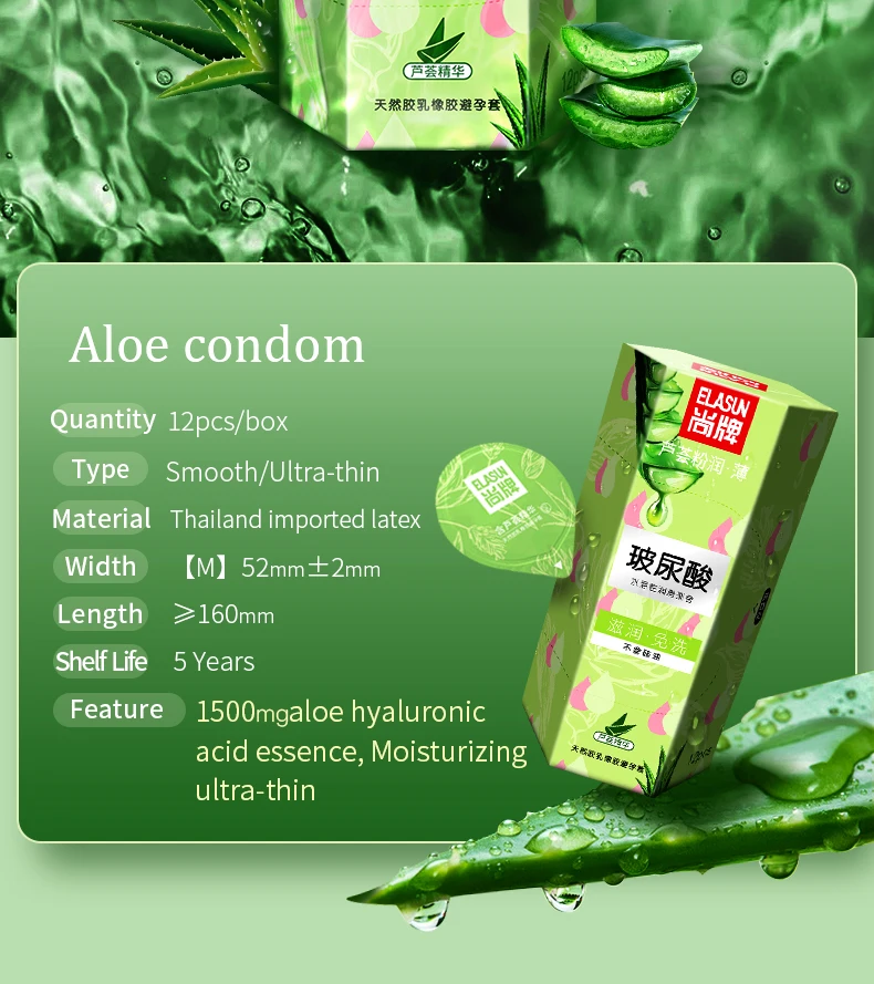 Отзывы о ELASUN 2 коробки Ультратонкий презерватив для мужчин алоэ Гиалуроновая кислота