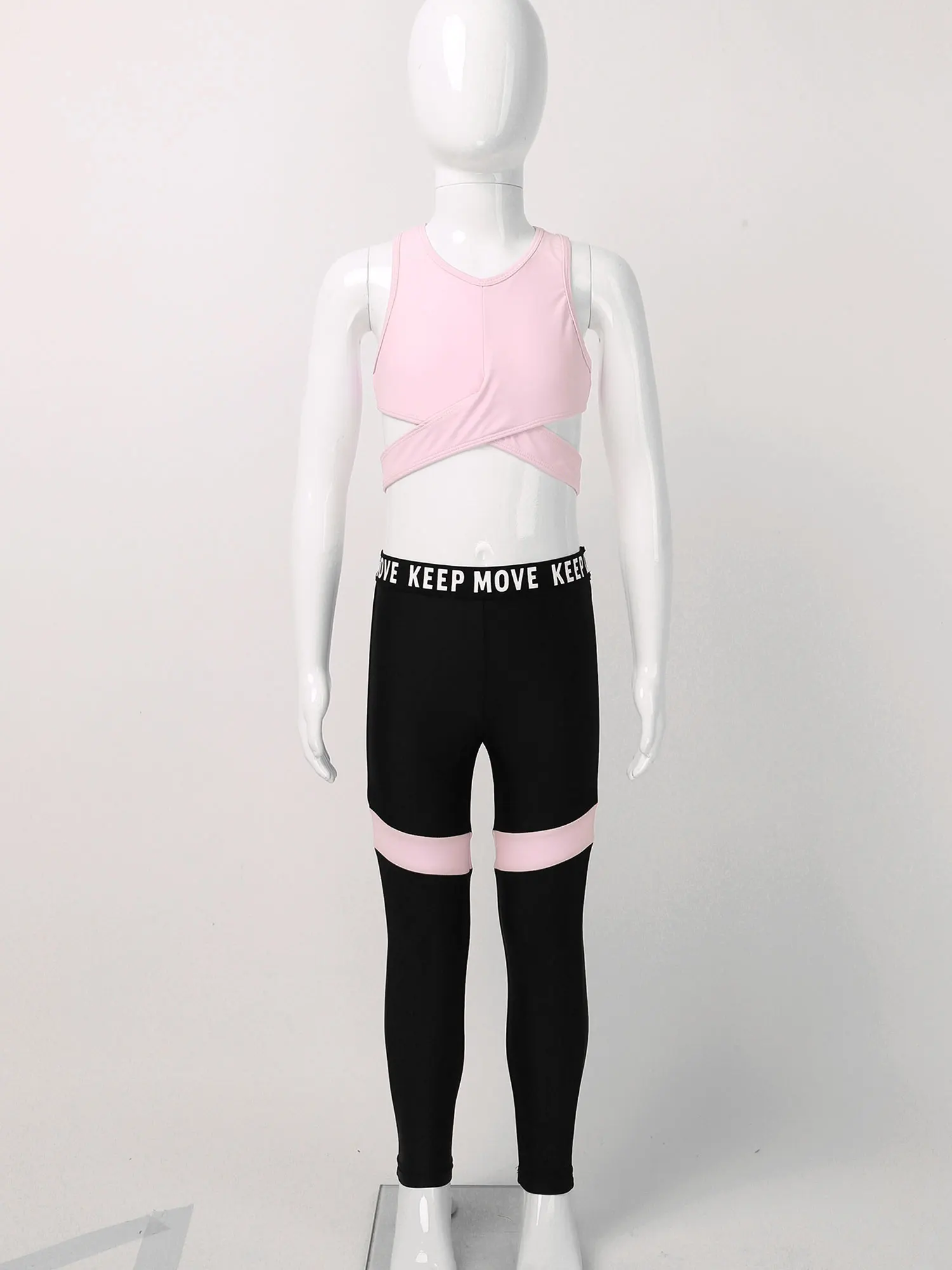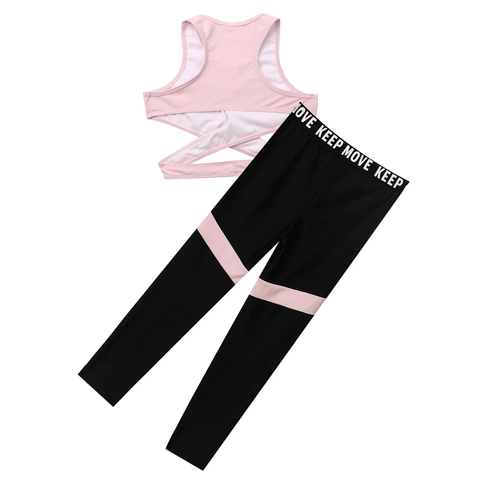 Спортивный топ без рукавов с круглым вырезом и поясом на спине для девочек; Комплект со штанами с эластичной резинкой на талии.