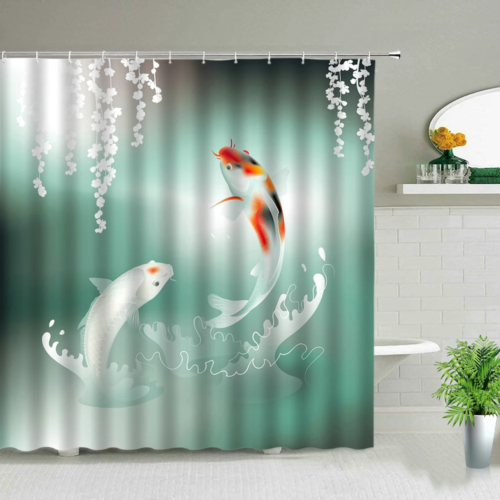 Отзывы о Занавеска для душа Koi с принтом рыб волны масляная живопись пейзаж экран ванной