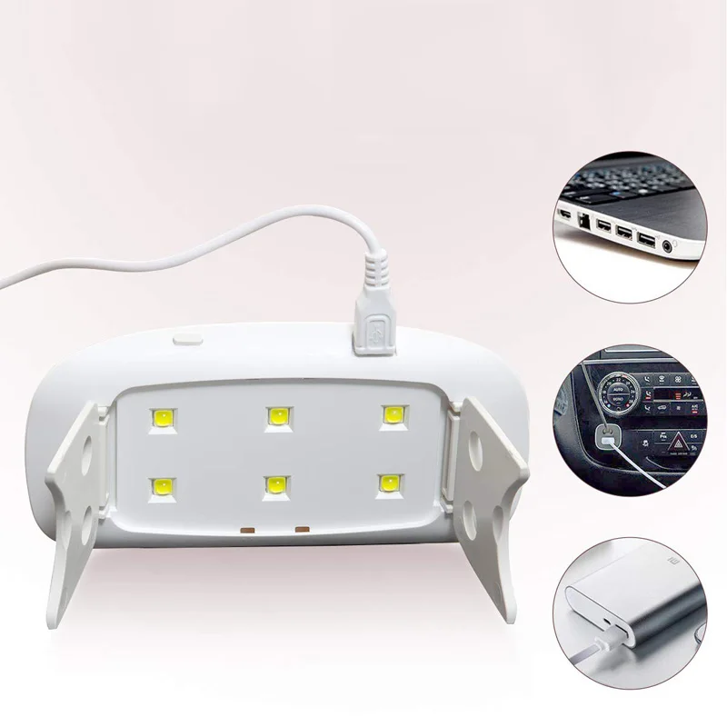 Мини 6 Вт Сушилка для ногтей портативный 6 светодиодный УФ-лампа для маникюра USB кабель для домашнего использования лампа для сушки ногтей