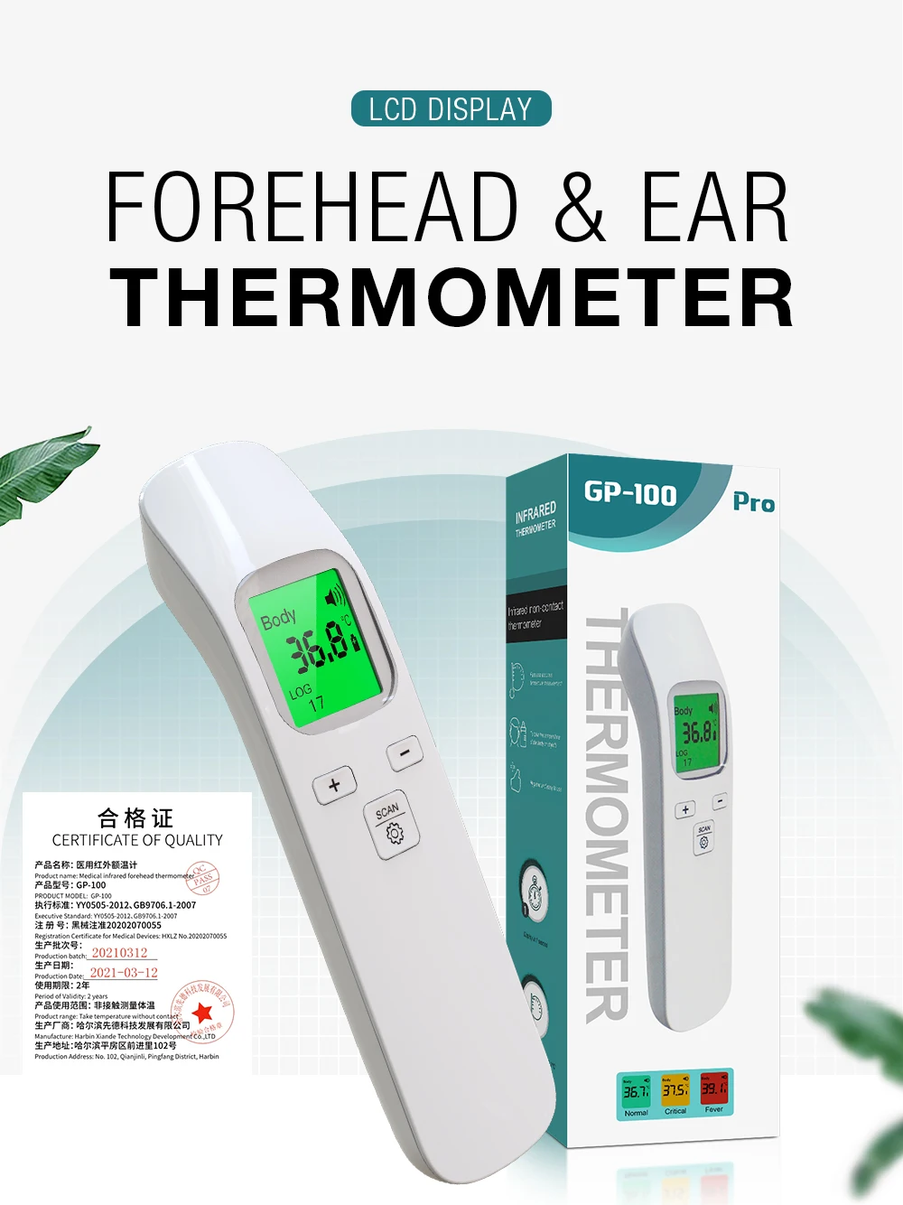 1. Точный и надежный: наш термометр для лба оснащен самой передовой медицинской инфракрасной технологией и высокоточным датчиком, который может получить надежные и точные показания в течение 1 с. Мы используем профессиональный медицинский АБС-материал, который безопаснее, чем традиционные ртутные термометры.